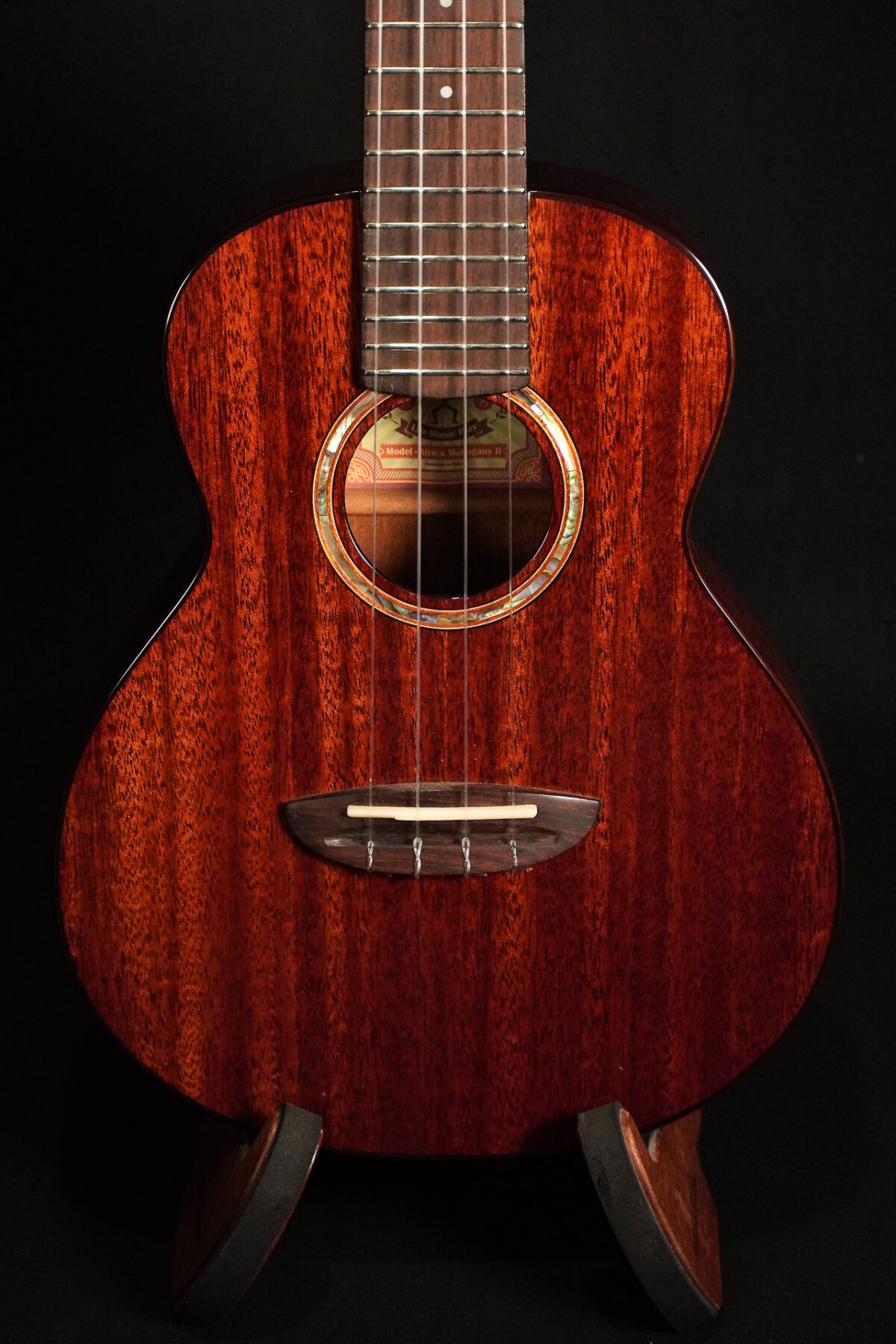 The AMM2 is, so to speak, the entry into the category of high-end instruments from aNueNue. Solid African mahogany construction, high-gloss finish, window headstock and beautiful wood and abalone inlays. If you are looking for an upmarket instrument at a very attractive price, you could get your money’s worth here.