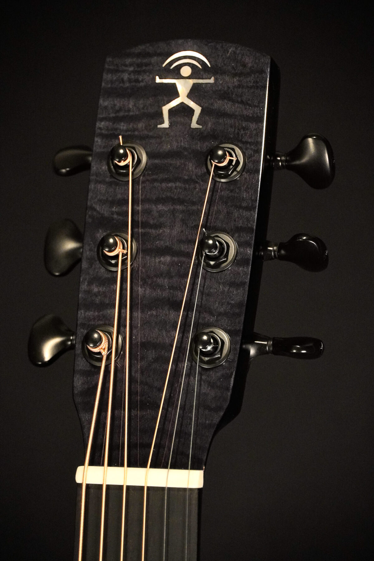 M77 travel guitar from Anuenue: Solid maple top, mahogany back & sides, great black & black sparkle high-gloss finish.
