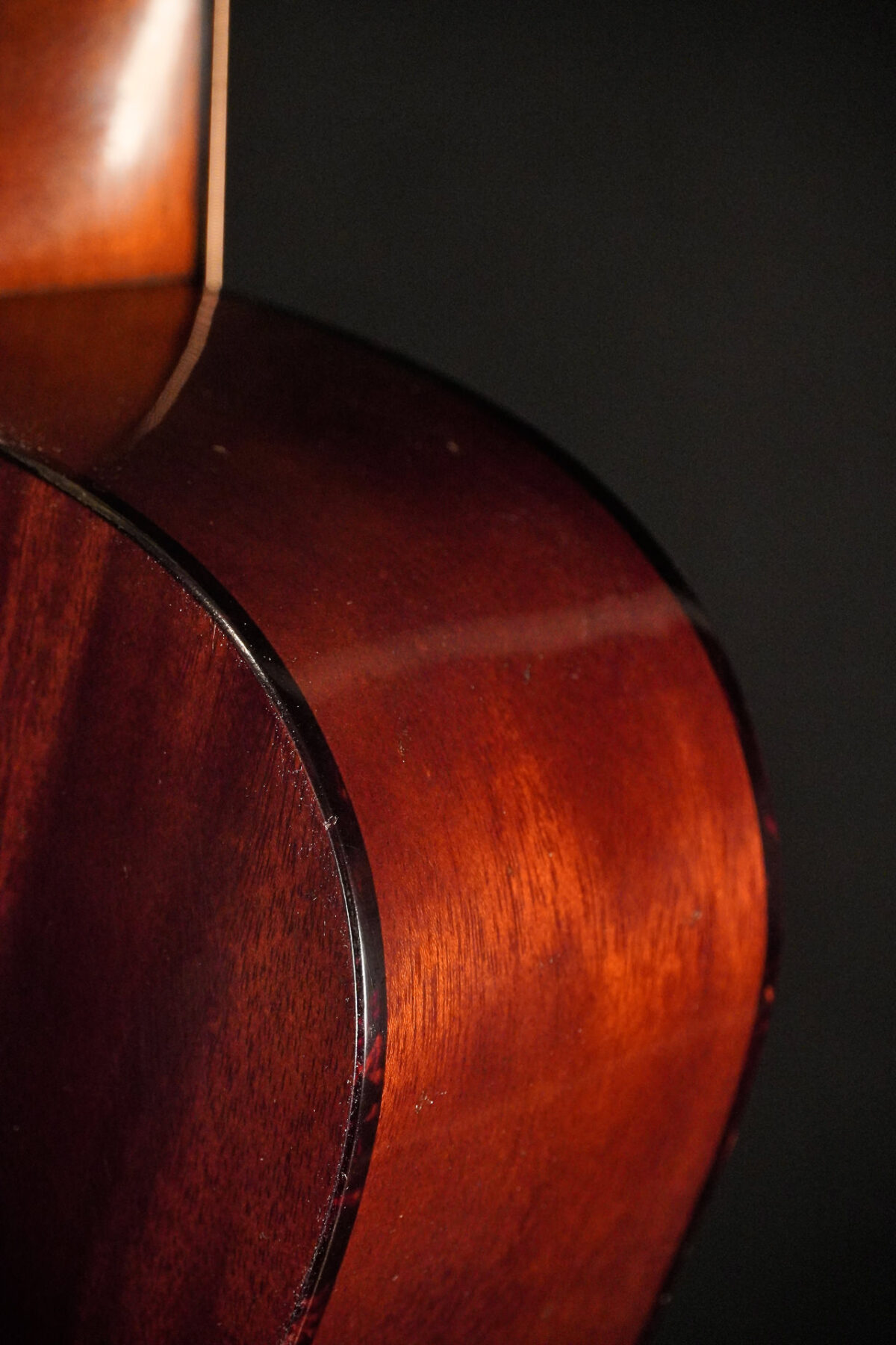 The Essential OM offers the pure Atkin sound – reduced to the essentials! Each Essential OM has a North American Sitka spruce top and PreWar scalloped bracing. Mahogany back and sides are complemented by a light mahogany neck with ebony fingerboard.