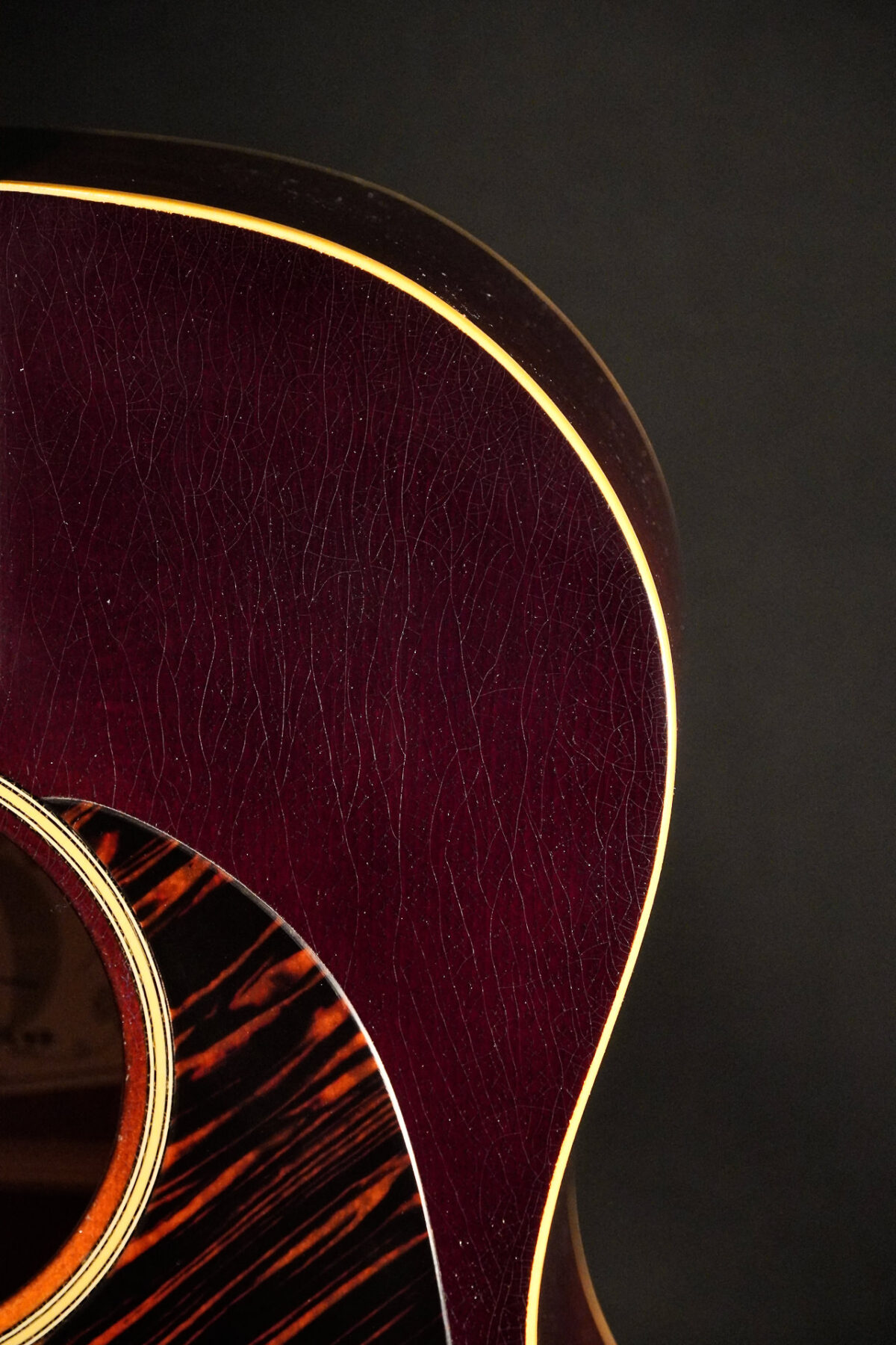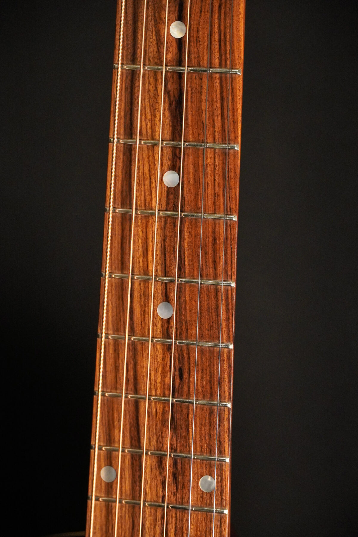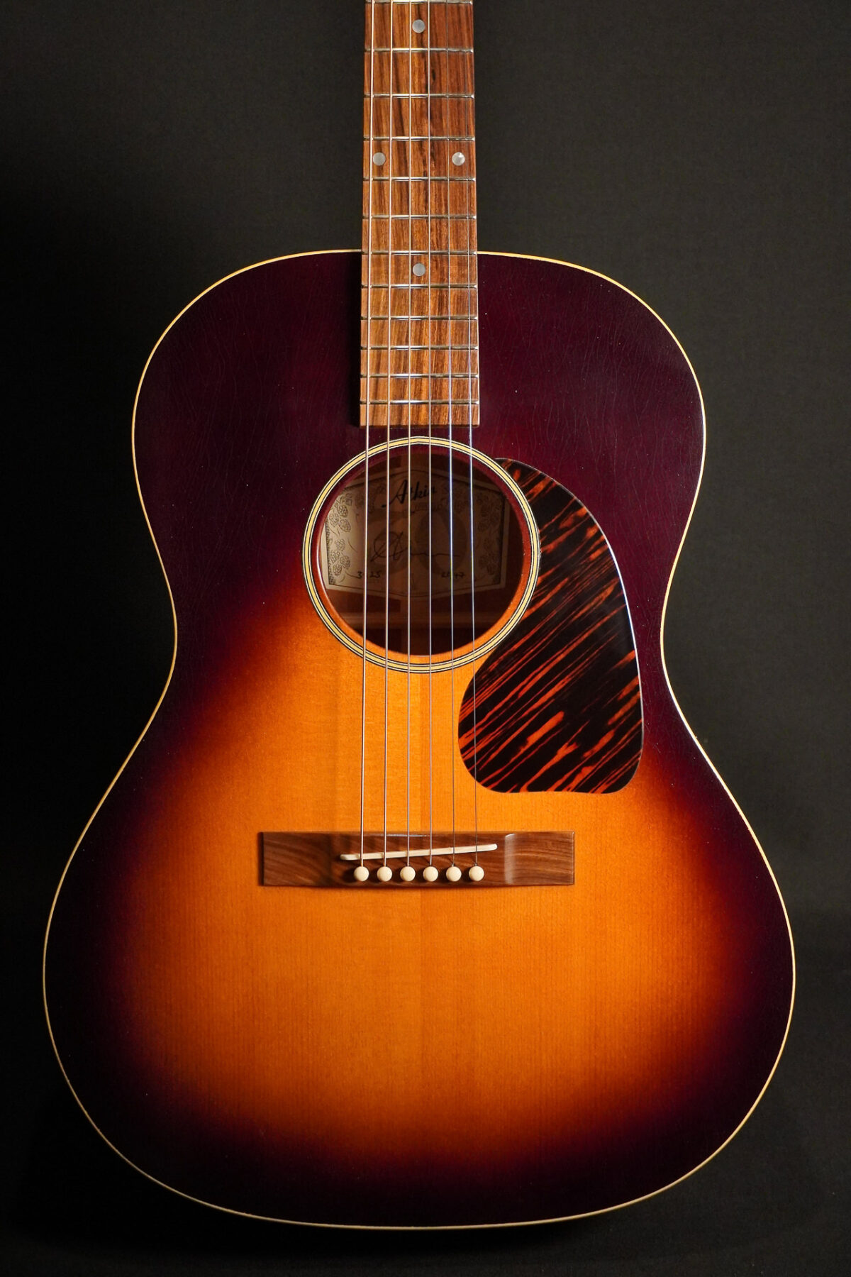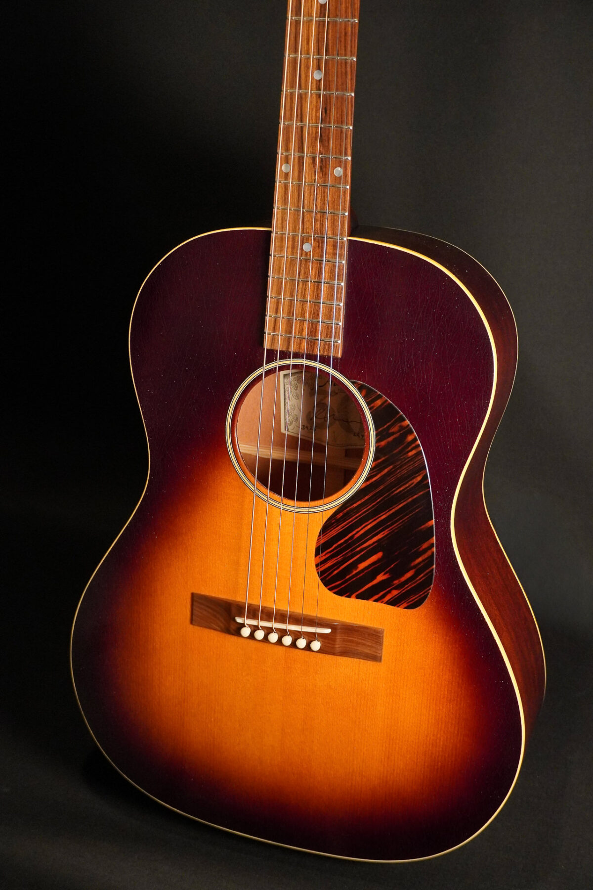 The “Forty Seven” is a very lightly built compact guitar with Pre War X-bracing. Excellent for fingerstyle and, thanks to its size and punch, also for flatpicking.