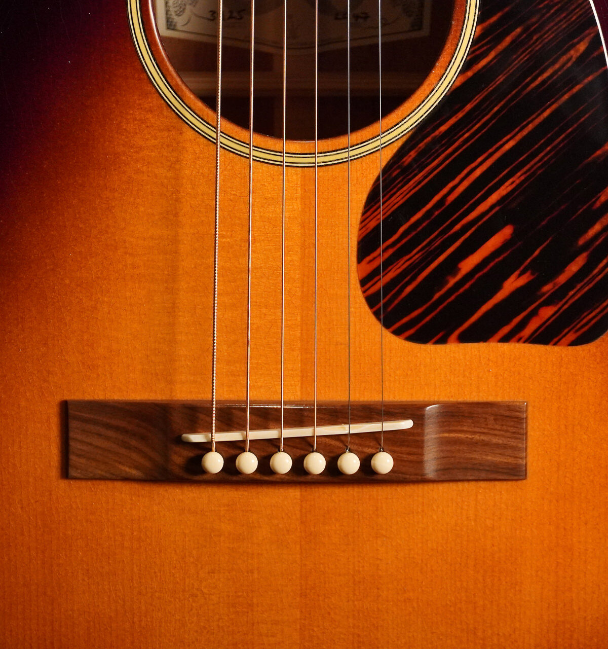The scalloped bracing gets the best out of this smaller body and provides very powerful and beautiful basses that you wouldn’t necessarily expect from a guitar of this compact size.