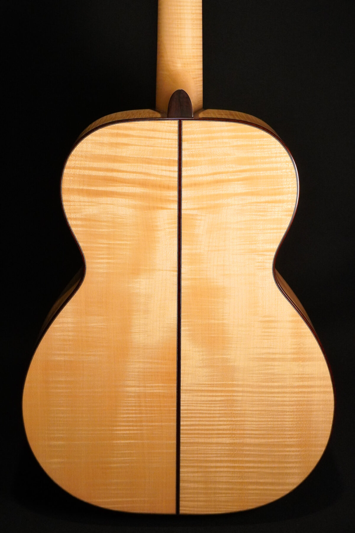 This OM-16F in mint MINT condition is one of BSG’s classics. Top made of alpine spruce combined with back & sides made of solid and beautifully grained maple. On the one hand, the 16F sounds like a typical high-quality OM, on the other hand, the combination of spruce and maple provides an extra boost in clarity and brilliance. Impressive, somehow unique and in any case assertive.