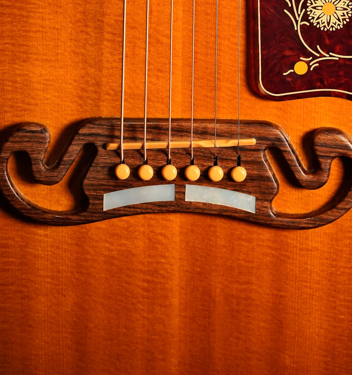 Crafted to custom store standards, this super jumbo combines high-quality quilted maple back and sides, a solid Sitka spruce top and elegant abalone trim to deliver not only a visual wow factor, but also the classic power and presence of the SJ-200. Whether playing chords or fingerstyle, the guitar impresses with a deep, clear sound and an unmistakable bass.