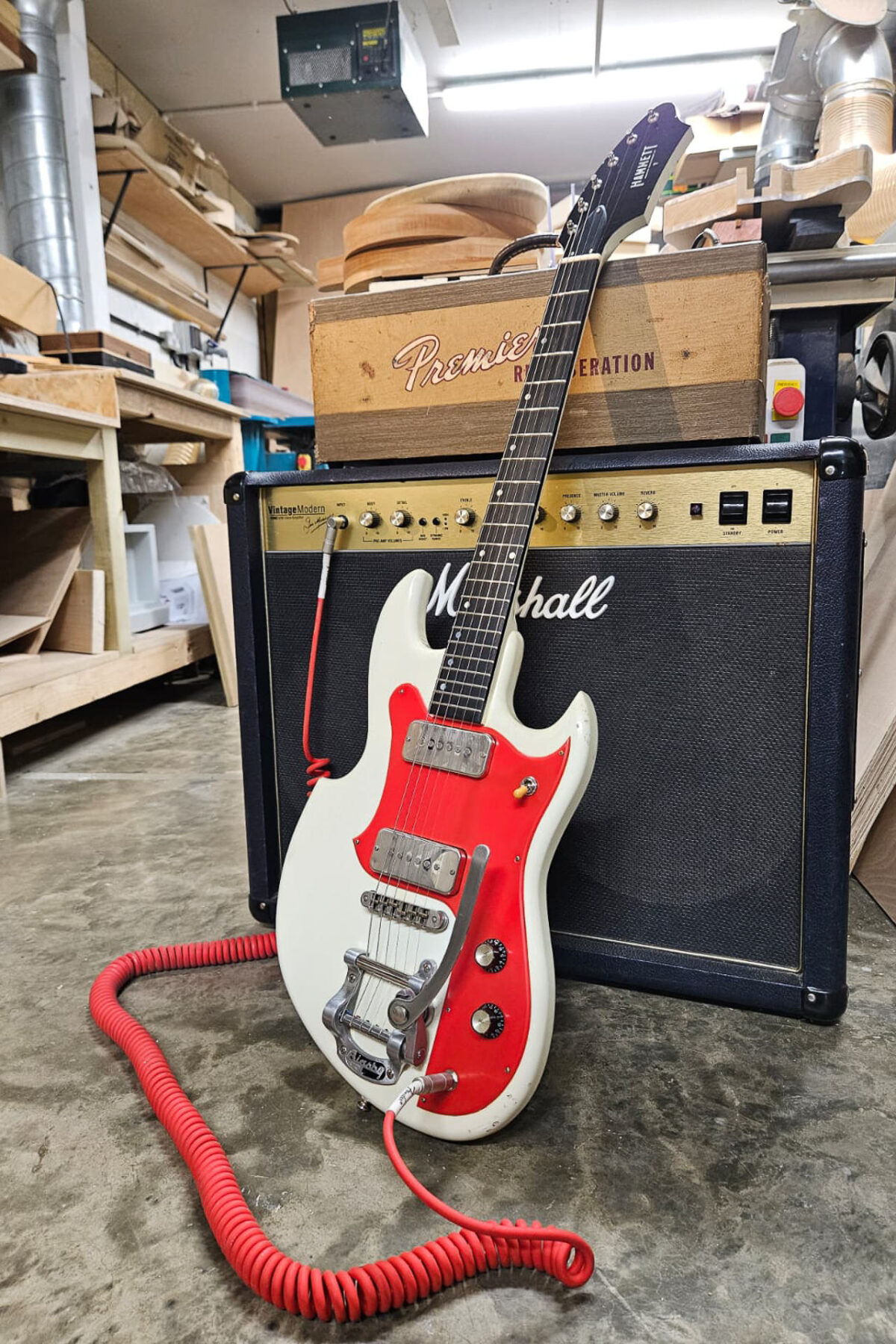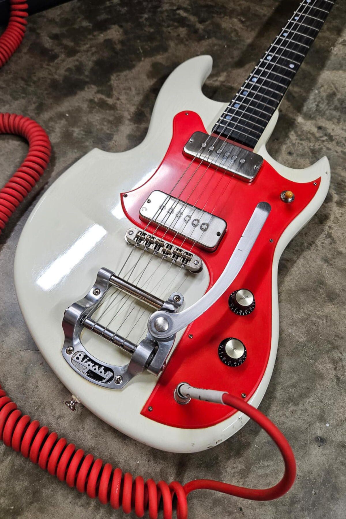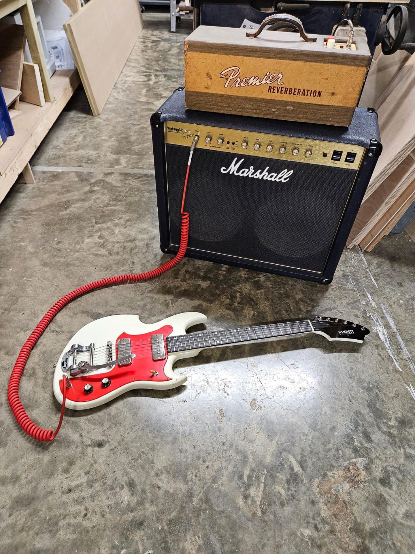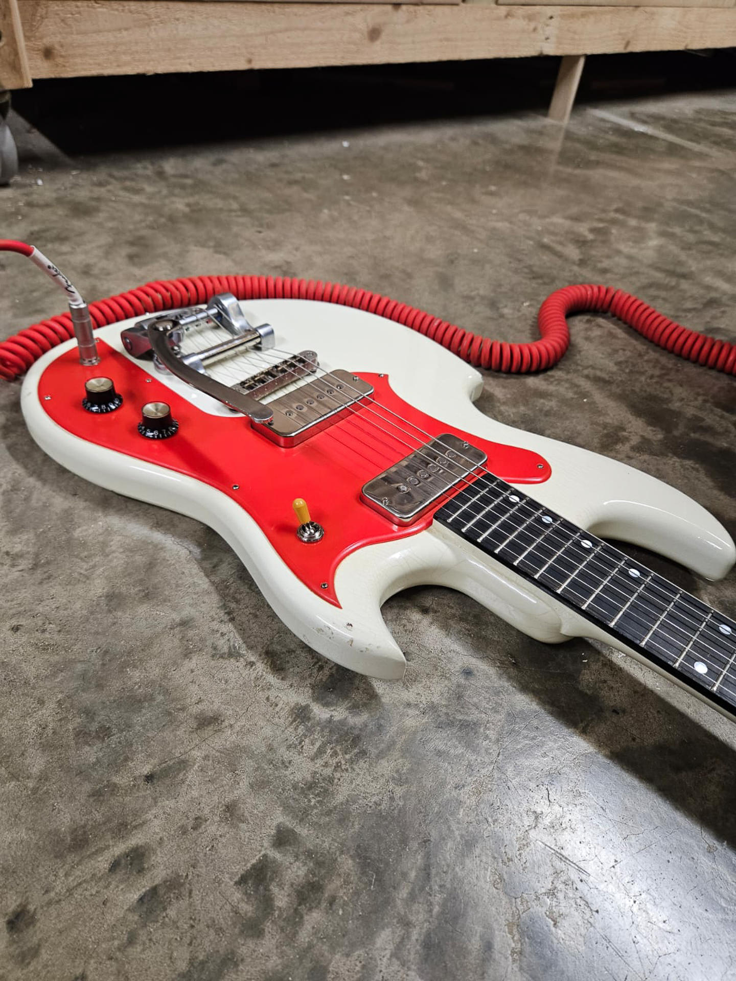 It doesn’t get much more cool, vintage vibe and 60s surf flair than this! This Nazare H620 is our latest addition from the English one-man operation Hammet Guitar Co. Visually and sonically inspired by the legendary 60s Maton Fyrbird, the H620 Nazare invites you to unpack the fuzz pedal, turn up the tube amp and get going. A real vintage machine for everything from blues, indie, rock and harder.