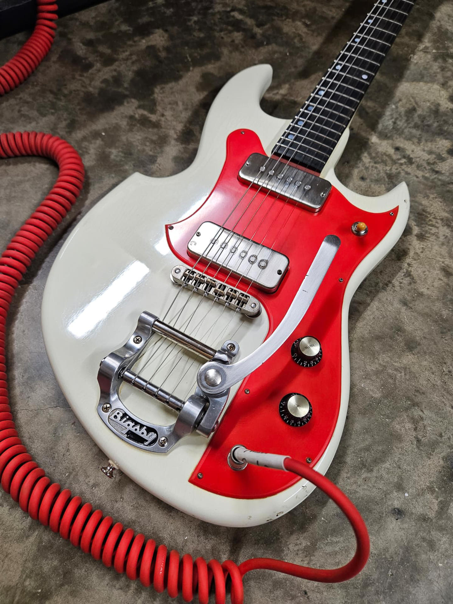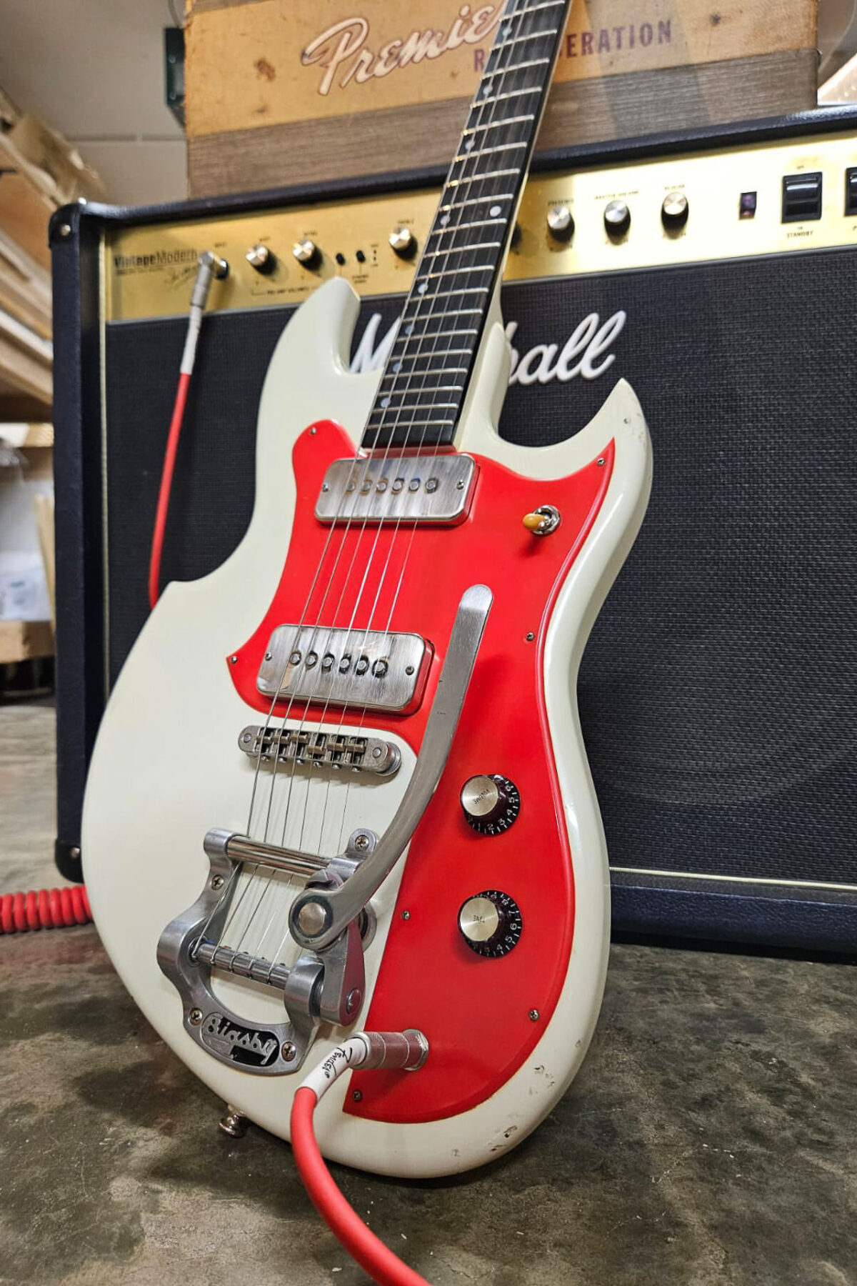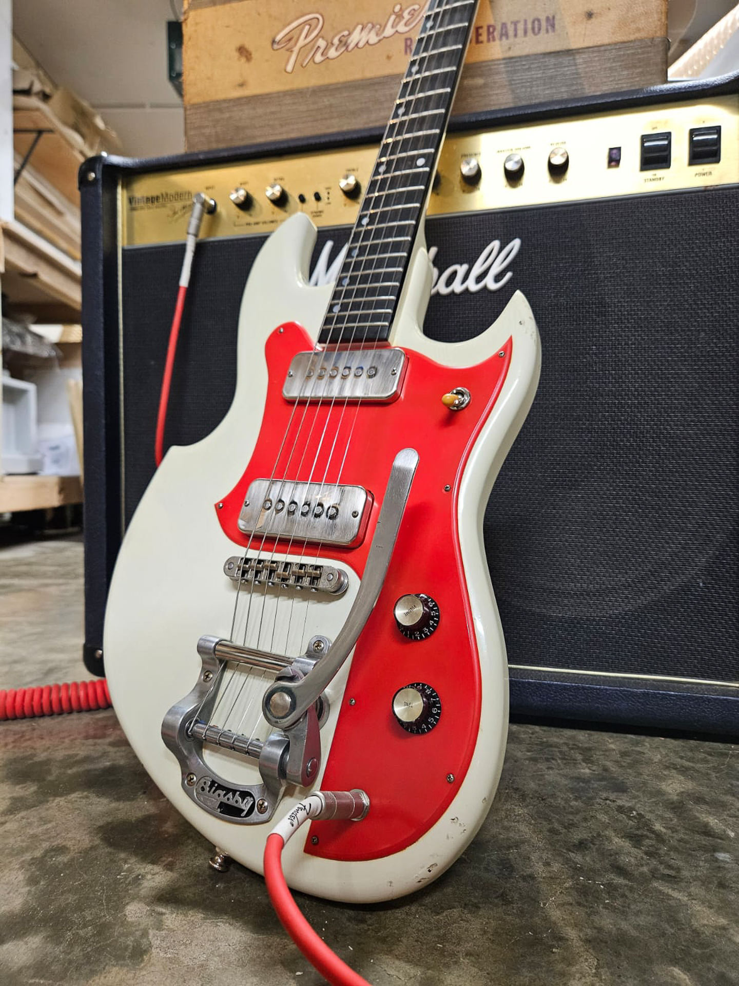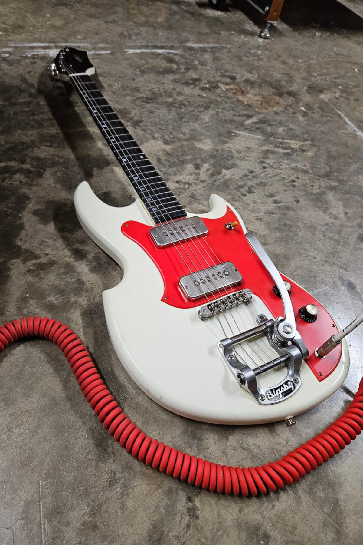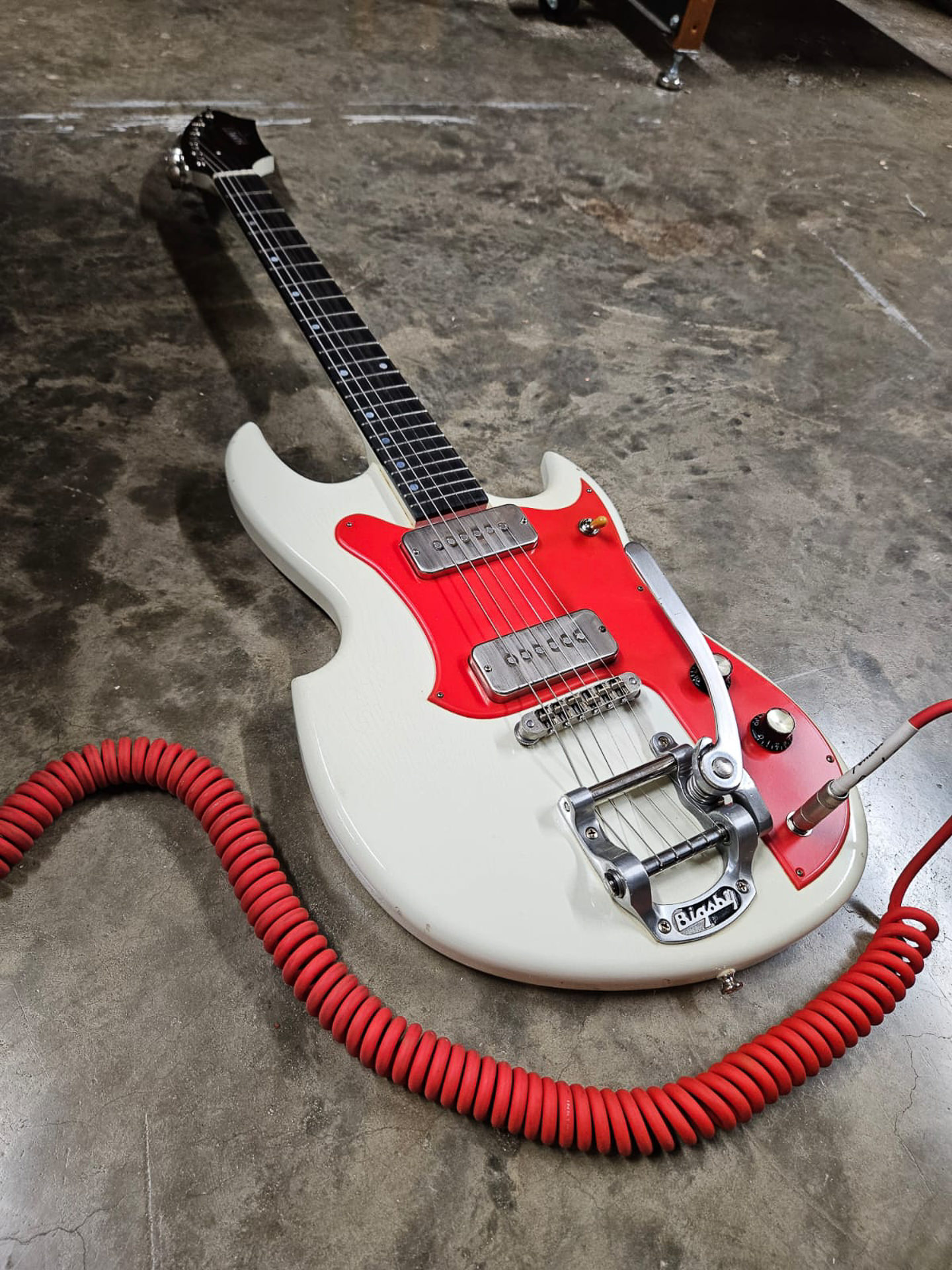 It doesn’t get much more cool, vintage vibe and 60s surf flair than this! This Nazare H620 is our latest addition from the English one-man operation Hammet Guitar Co. Visually and sonically inspired by the legendary 60s Maton Fyrbird, the H620 Nazare invites you to unpack the fuzz pedal, turn up the tube amp and get going. A real vintage machine for everything from blues, indie, rock and harder.