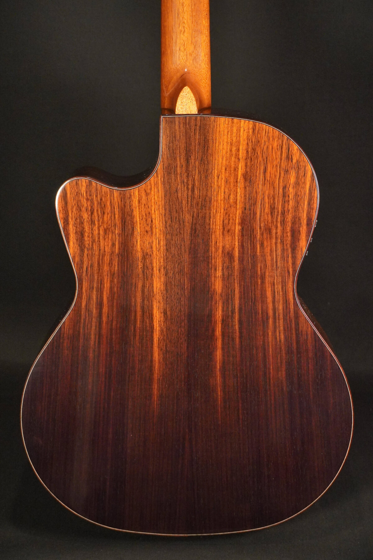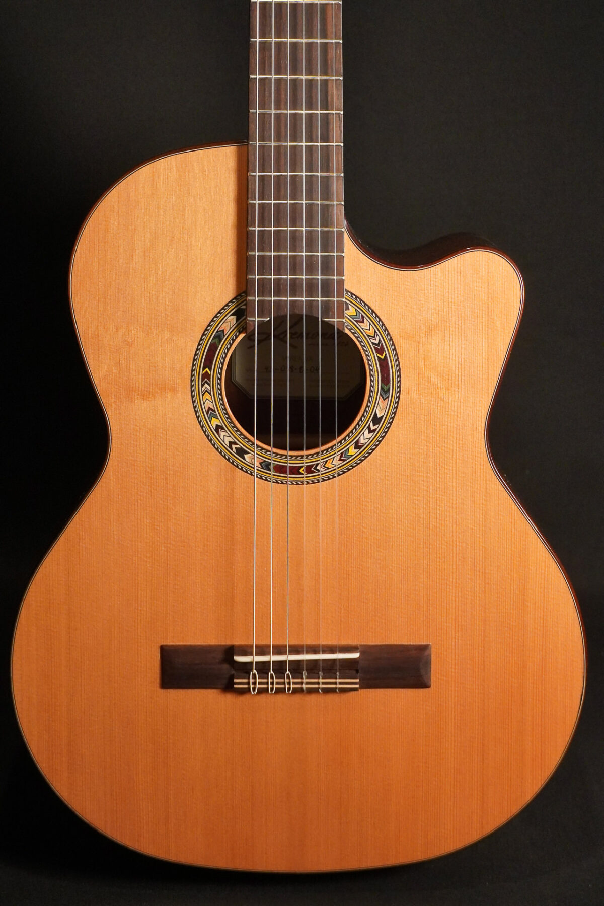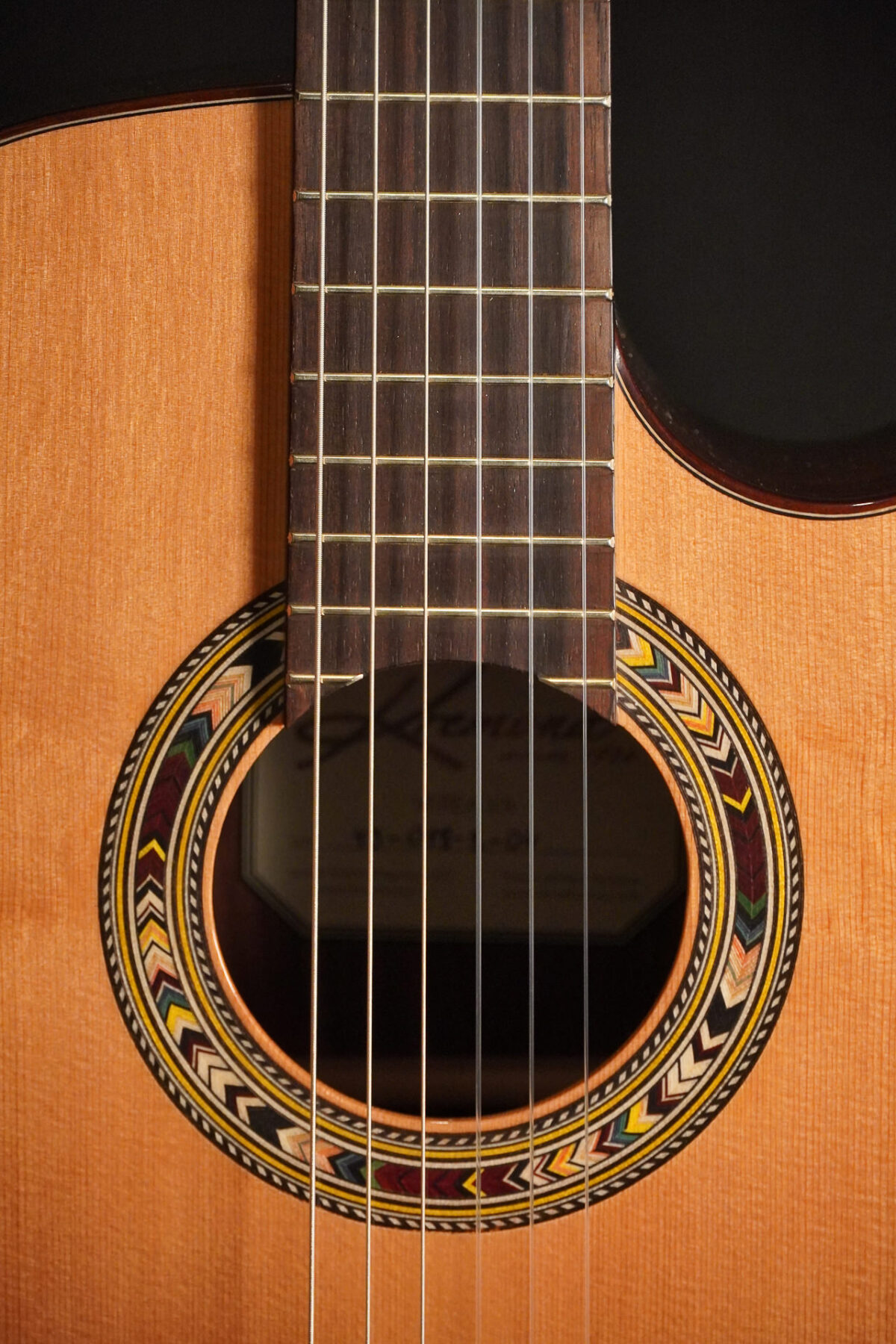 Anyone looking for a high-quality crossover Classical Guitar at a very attractive price will certainly get their money’s worth here. Solid construction with spruce and Indian rosewood, narrower neck with 48mm nut, curved fingerboard, built-in Fishman pickup: this Kremona has everything a good crossover Classical Guitar needs.