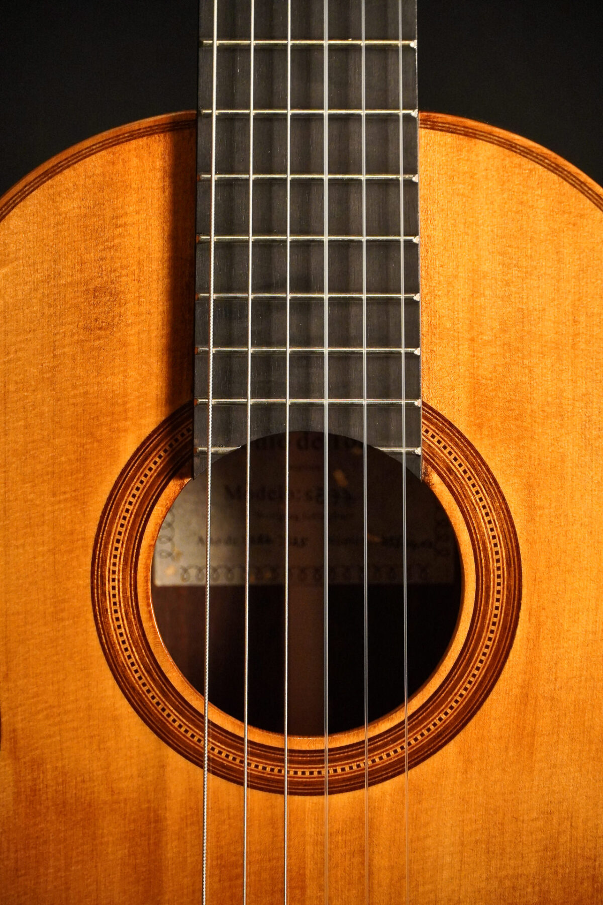 Historically important and legendary instruments, such as those of the famous 18th-century guitar maker Antonio de Torres, are meticulously examined using the few remaining originals, and detailed construction plans are created. Based on this data, the highest-quality, all-solid, handcrafted instruments are then built, replicating the originals both visually and sonically.