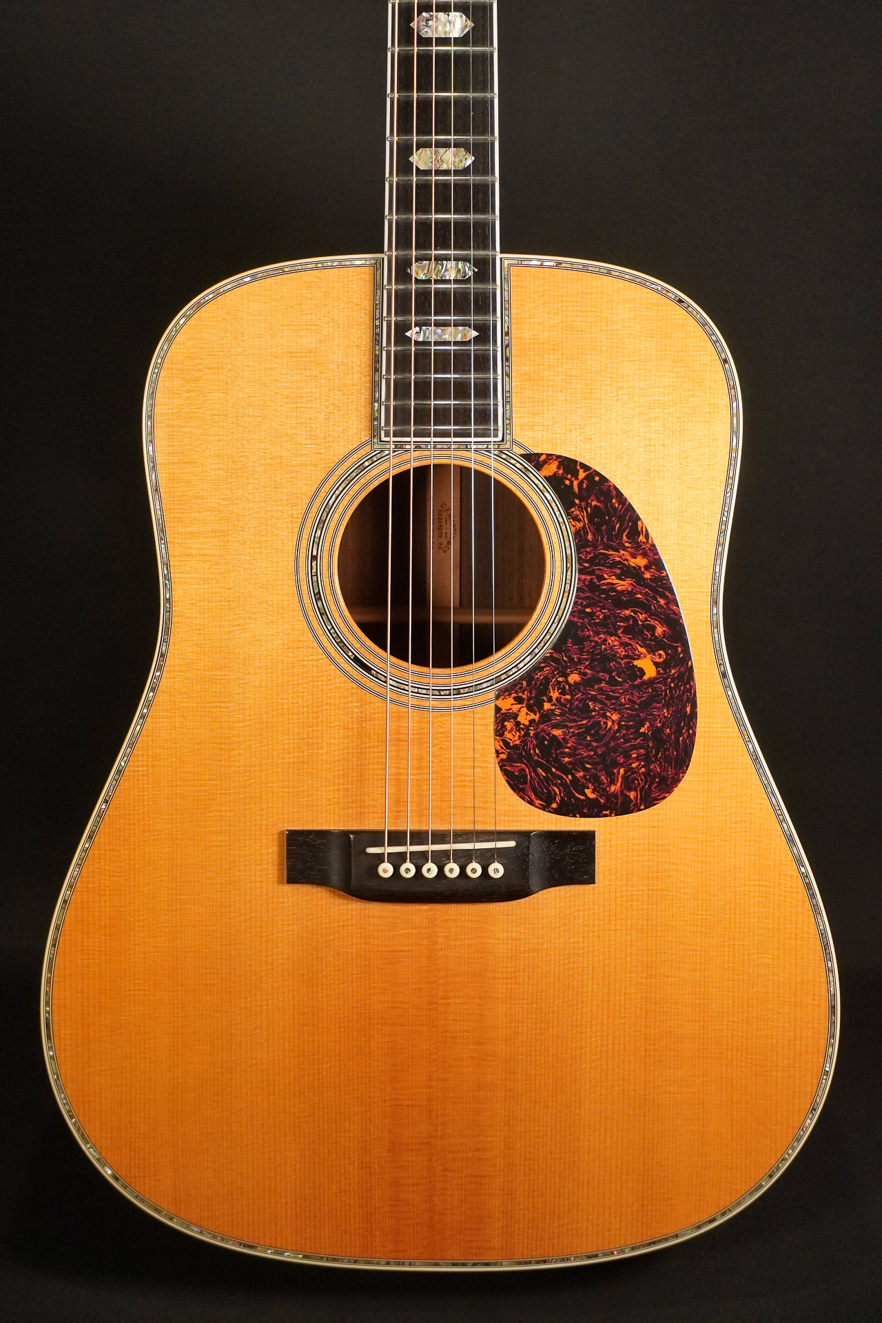 The D-45, a dreadnought with Style 45 appointments, is the absolute top model among the dreadnought series of the legendary American manufacturer. In the “First Series”, i.e. between 1933 and 1942, just 91 instruments with these specifications were produced, which are incredibly rare today and fetch astronomically high prices on the vintage market.