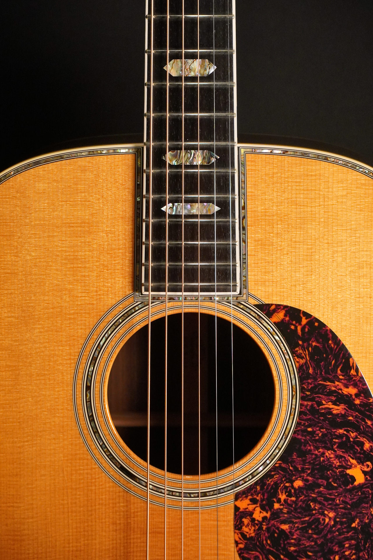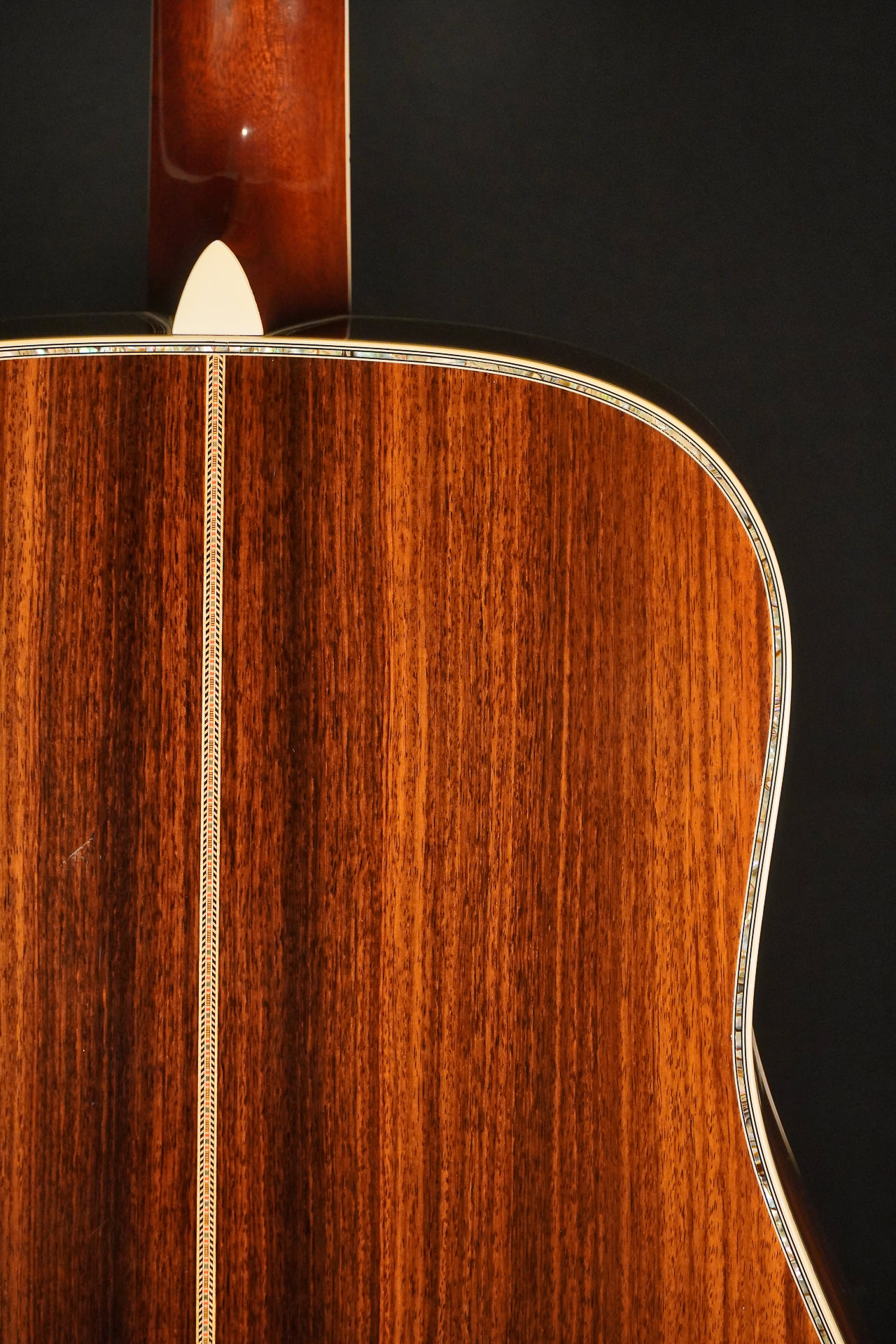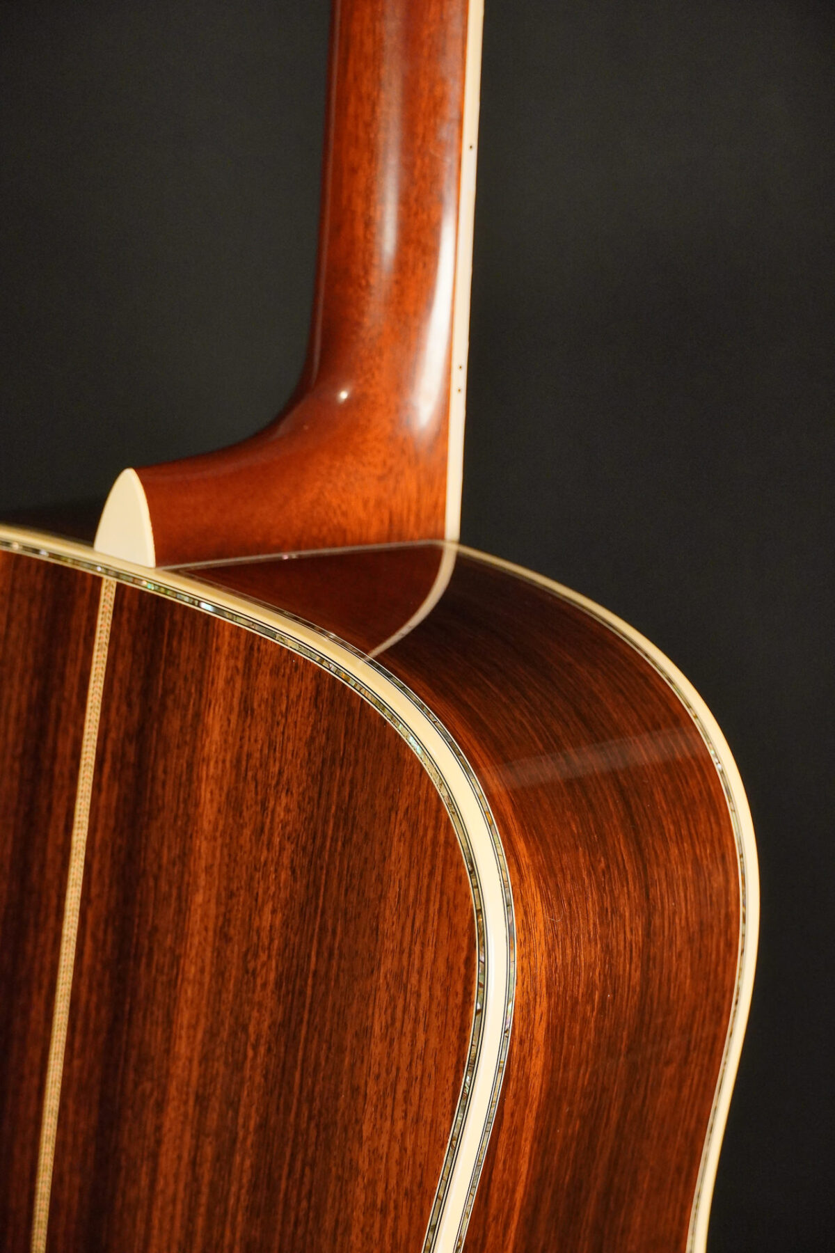 These are the typical visual characteristics of a Martin D-45: Top made of Sitka spruce, sides & back made of rosewood (Brazilian Rosewood or Indian Rosewood depending on the year of manufacture and series), fingerboard made of ebony and inlays made of abalone as far as the eye can see. There were also 12-fret models built, but in most cases a D-45 is a 14-fret dreadnought.