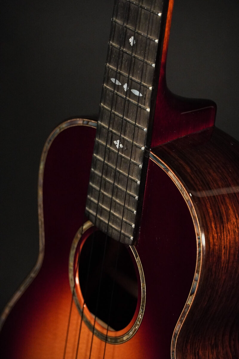 Eine der neuesten Ukulelen-Serien von Anuenue. Diese Serie ist eine Neuinterpretation des traditionellen amerikanischen Baustils mit Tonhölzern wie Koa, Mahagoni, Palisander und Fichte und einer klassischen Kopfplattenform im Schnurrbart-Stil. Im Falle dieser wunderschönen RT5R mit Decke aus Mondfichte, Boden & Zargen aus feinem indischen Palisander.