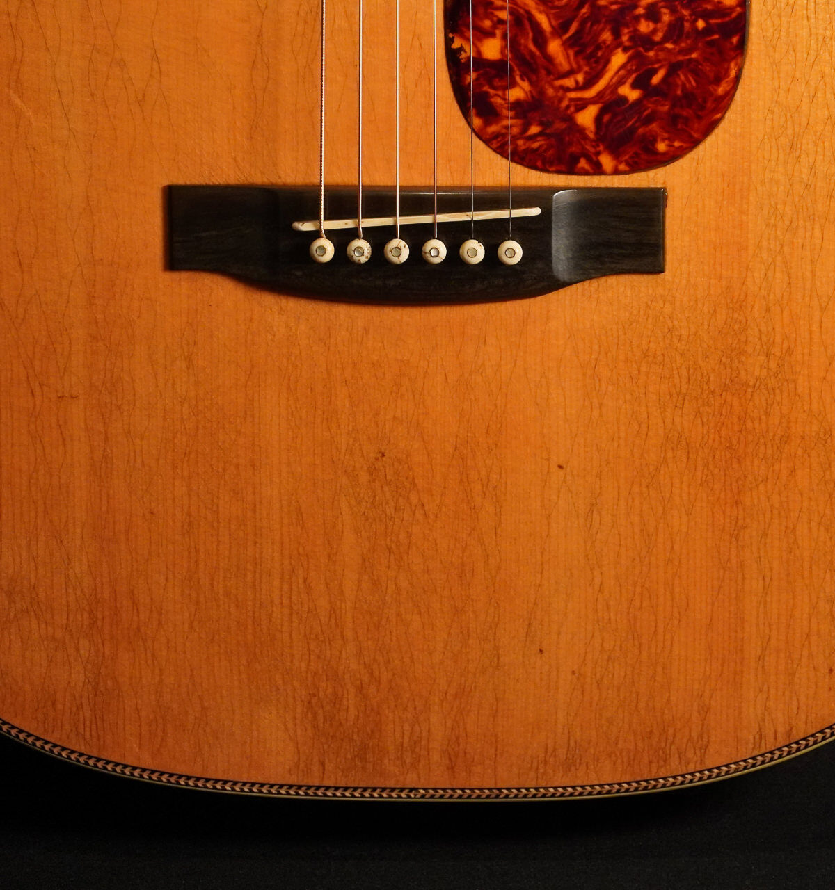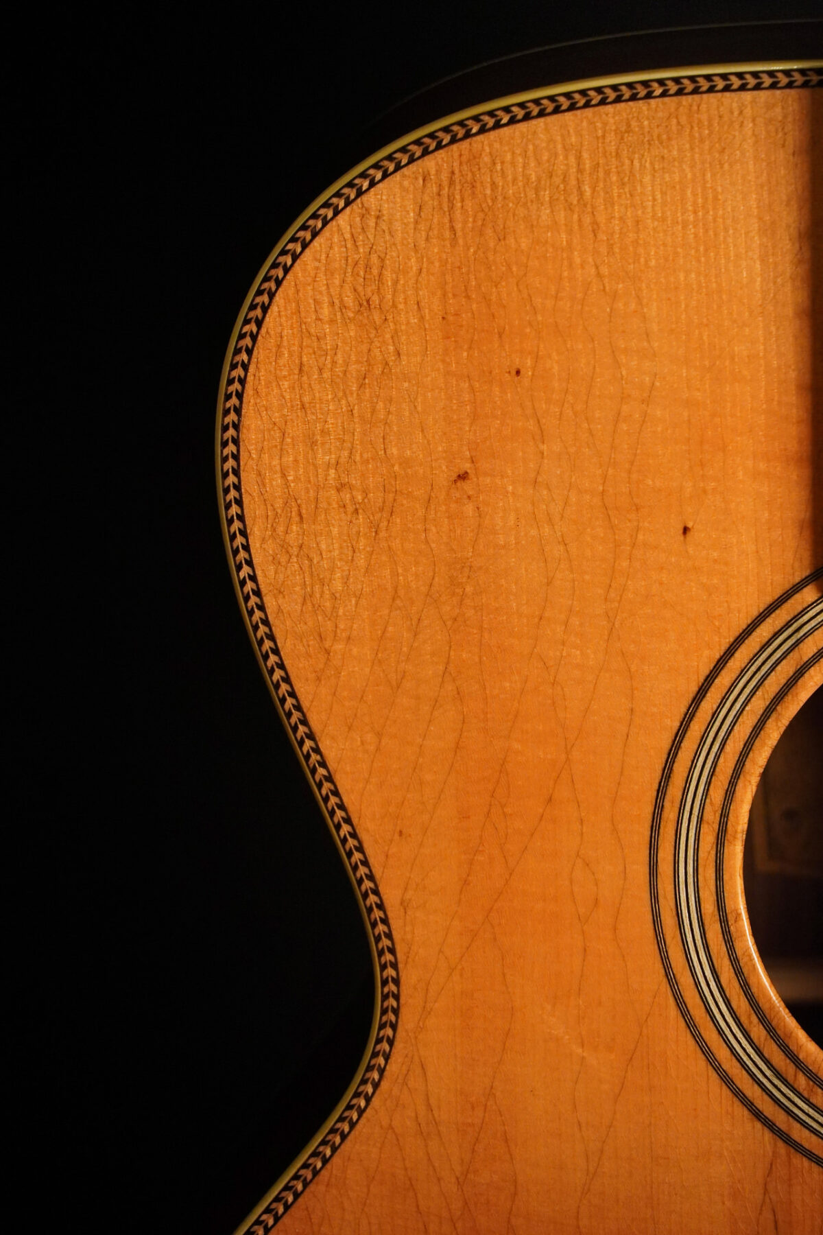 Die OM37 ist ein echter Allrounder mit genug Klarheit für Fingerstyle und tollem Volumen für Akkorde. Gebackene Fichtendecke, Boden und Zargen aus indischem Palisander. Für die Atkin typische vintage Optik sorgt das geschmackvoll ausgeführte und diesmal bestellte „medium Aging“, Herringbone-Binding, Nitrolackierung.