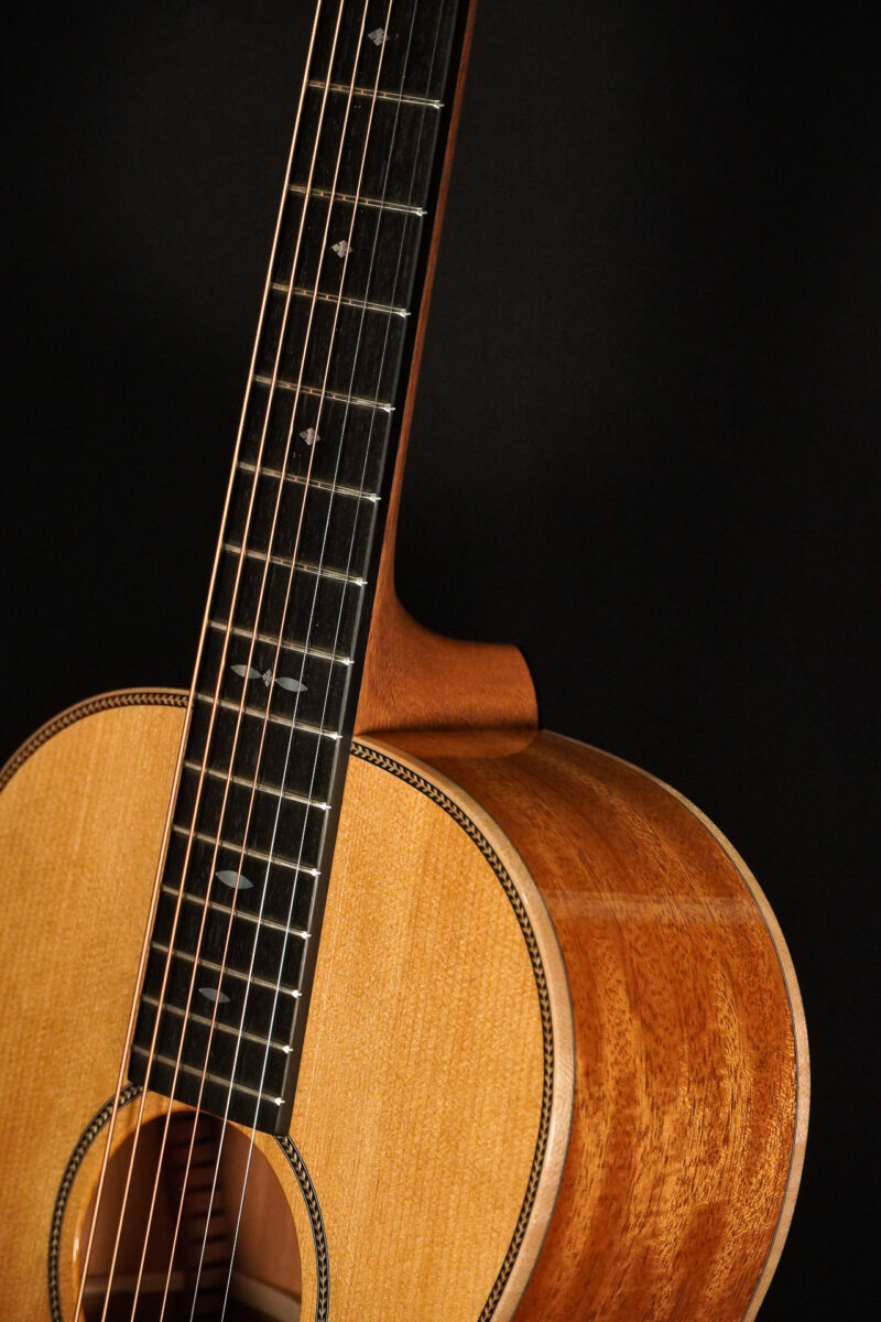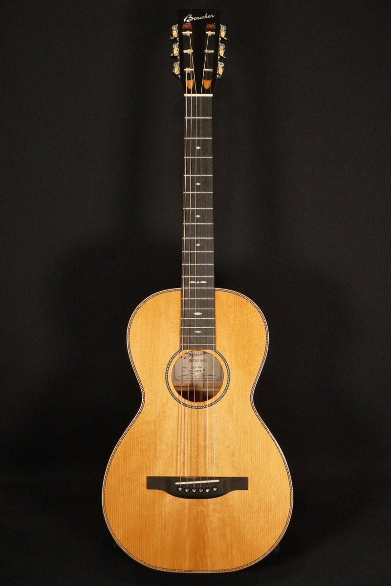 Tolle Parlor Gitarre aus der Heritage Goose Serie von Boucher, klein, leicht und sehr resonant. Gebackene Adirondack Fichtendecke höchster Qualität gepaart mit bestem brasilianischen Mahagoni.