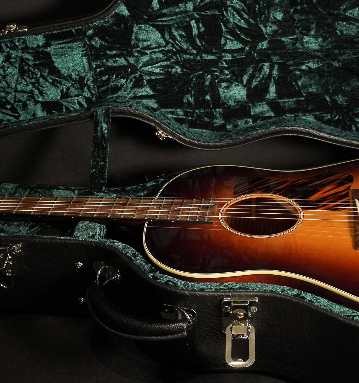 Massiv gebaute Slope Shoulder Dreadnought mit Decke aus Sitka Fichte, Boden & Zargen aus Mahagoni, Tiger-Stripe Pickguard und wunderschönem Sunburst Finish. Nicht nur optisch spektakulär, sondern auch klanglich ein tolles Instrument mit sehr angenehmen Gewicht. Ein hochwertiger Koffer ist natürlich inklusive.