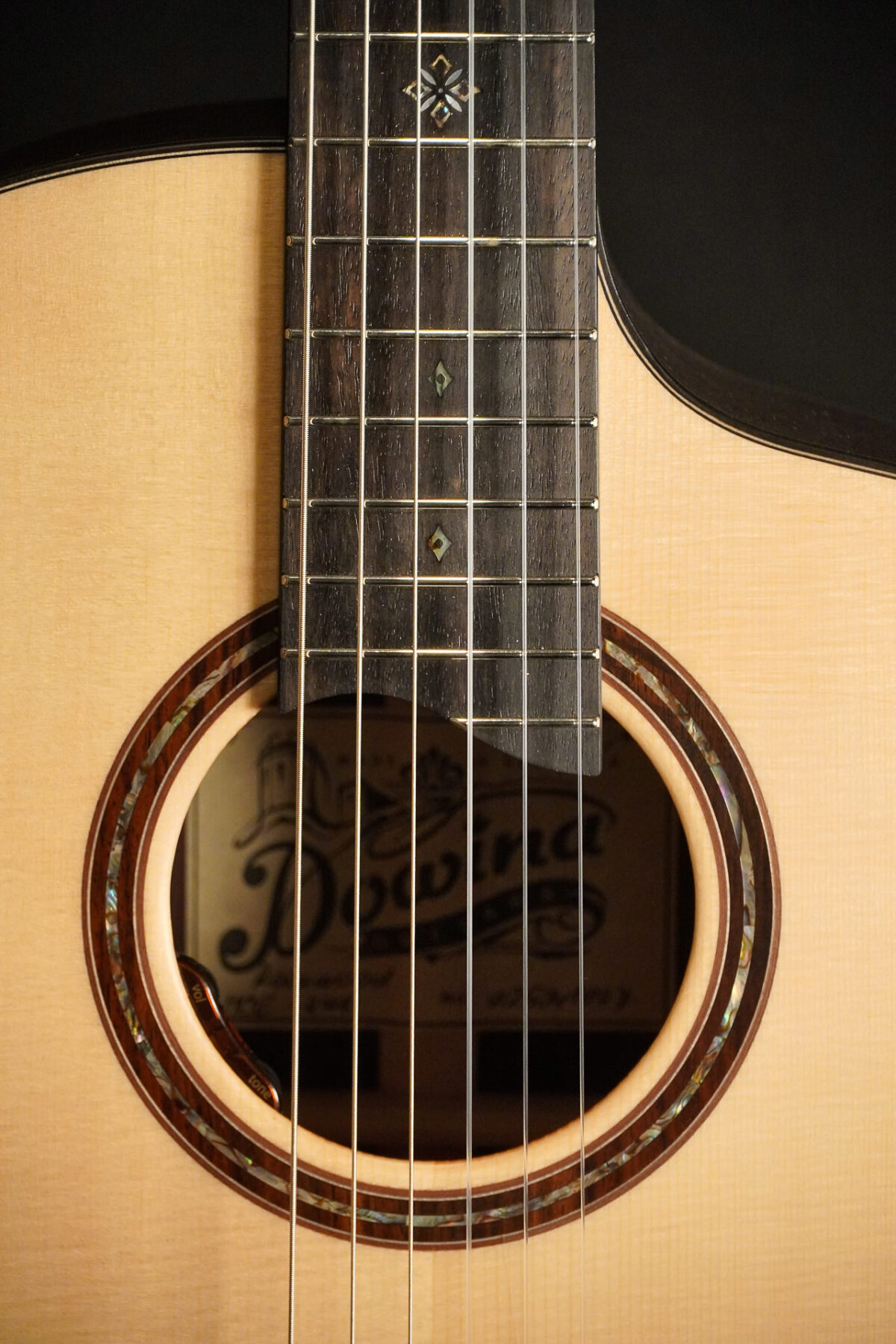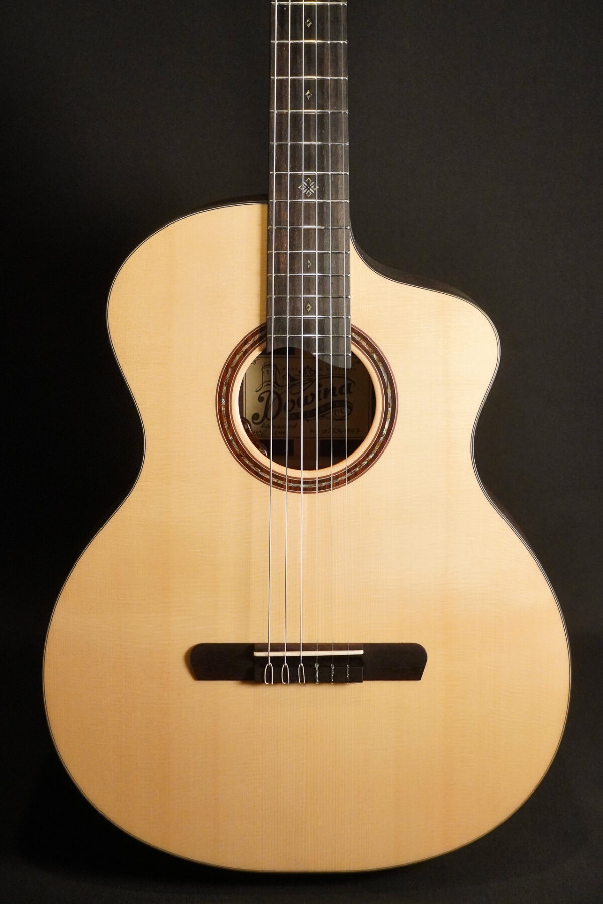 Wunderbar warm klingende Crossover Nylon Konzertgitarre von Dowina: Massive Decke aus europäischer Fichte, Korpus aus massivem inidschen Palisander.