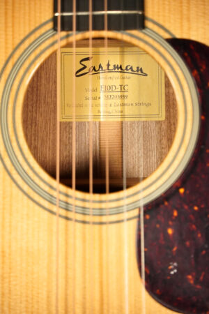 Eastman TC oder „Thermo Cure“ Instrumente werden mit extra gebackenen Deckenhölzern ausgeliefert. Diese Alterung der Deckenhölzer wirkt sich positiv auf das Klangverhalten der Gitarren aus und „simuliert“ genau das, was mit Gitarren passiert die natürlich über Jahrzehnte altern und eingespielt werden. So auch bei dieser Eastman E10D-TC: Gebackene Adirondack Fichtendecke, Korpus aus massivem Mahagoni, Truetone Gloss Finish, hochwertiger Eastman Koffer inklusive. Eine sehr hochwertige typische Dreadnought: Laut, präsent, kraftvoll.