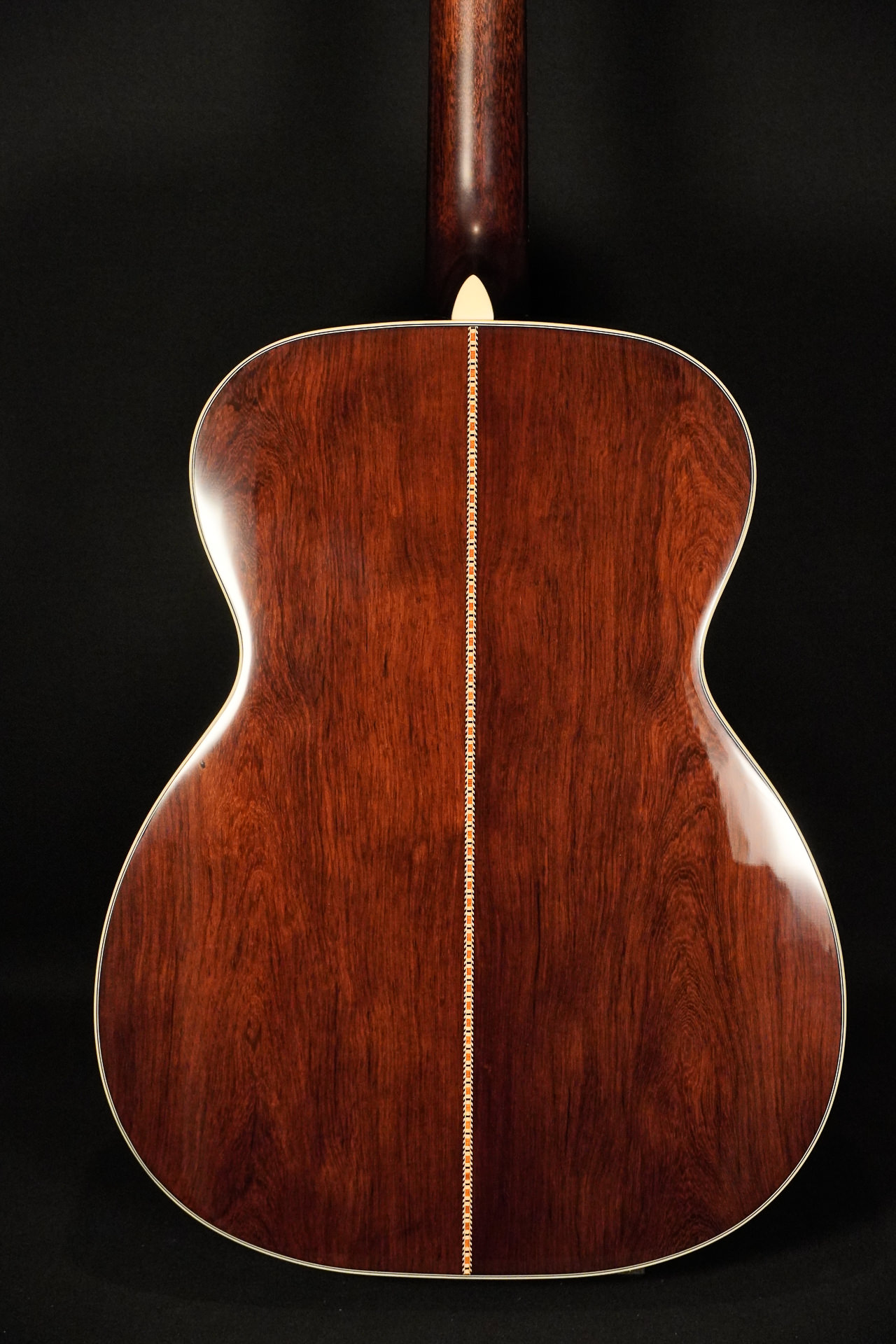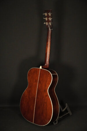 Eastman TC oder „Thermo Cure“ Instrumente werden mit extra gebackenen Deckenhölzern ausgeliefert. Diese Alterung der Deckenhölzer wirkt sich positiv auf das Klangverhalten der Gitarren aus und „simuliert“ genau das, was mit Gitarren passiert die natürlich über Jahrzehnte altern und eingespielt werden. So auch bei dieser Eastman: Decke aus gebackener Adirondack Fichte, Korpus aus Madagaskar Palisander, Snowflake Inlays aus Perlmutt, Ebenholzgriffbrett, Herringbone Binding. Diese OM von Eastman ist mit besten Materialien wirklich meisterlich verarbeitet und orientiert sich optisch, habtisch und klanglich an alten Meistergitarren traditioneller amerikansicher Manufakturen.