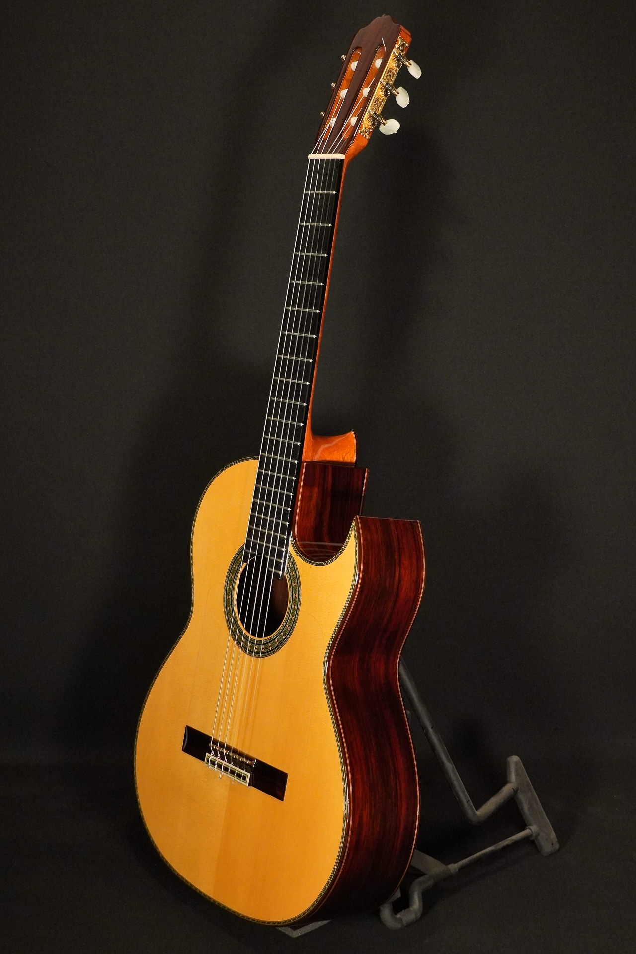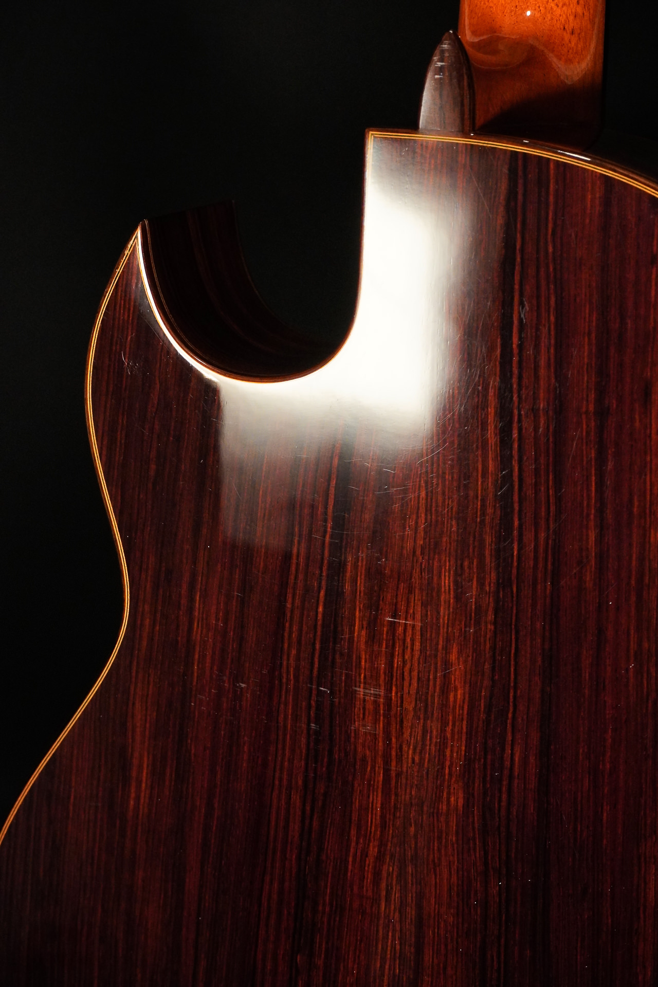 Sehr selten! Wahrscheinlich die einzige weltweit erhältliche Gitarre mit diesen Spezifikationen. Diese Felipe Conde CC37CW wird in Kommission für den Erstbesitzer verkauft. Sie wurde bei Conde Guitars mit einem Cutaway im Florentiner Stil und einem RMC Polydrive Midi-Pickup-System als custom order bestellt. Die Gitarre ist gebraucht und wurde von einem professionellen Musiker gut eingespielt, befindet sich aber in hervorragendem Zustand. Wie auf den Fotos zu sehen, weist sie leichte Kratzer und Spielspuren auf. Eine Gitarre mit diesen Spezifikationen würde heute bei Conde leicht zwischen 11.000 und 12.000 Euro kosten. Die Gitarre spielt sich hervorragend und wurde von unseren Gitarrenbauern professionell geprüft und eingestellt.