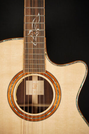 Die Rainbow OMc-AR Custom Shop ist eine spektakuläre OM Westerngitarre die von uns als Custom Order von Furch bestellt wurde. Adirondack-Fichtenecke, Korpus aus feinstem indischen Palisander. Mit dem L.R.Baggs Anthem Tonabnehmer ausgestattet.