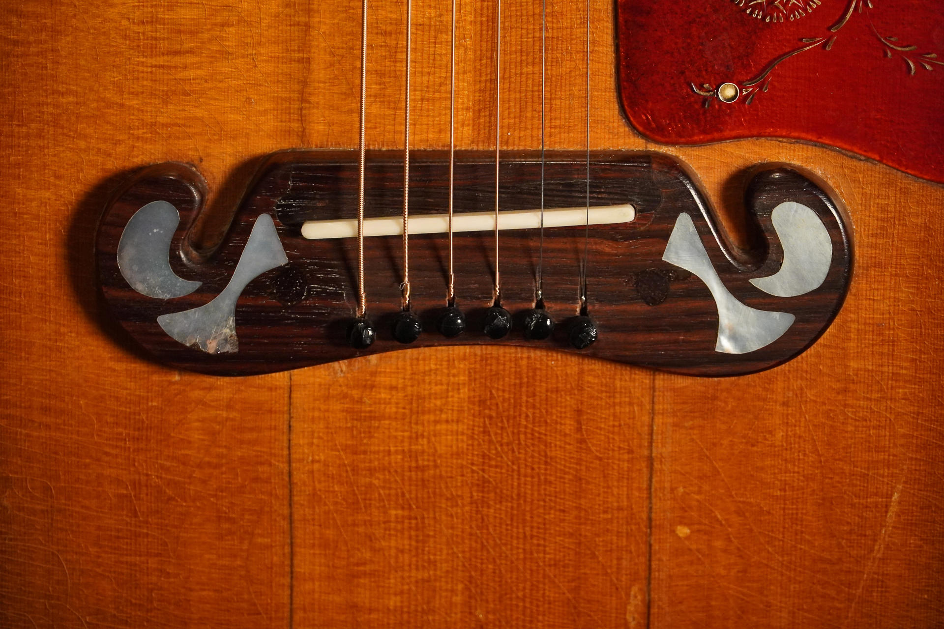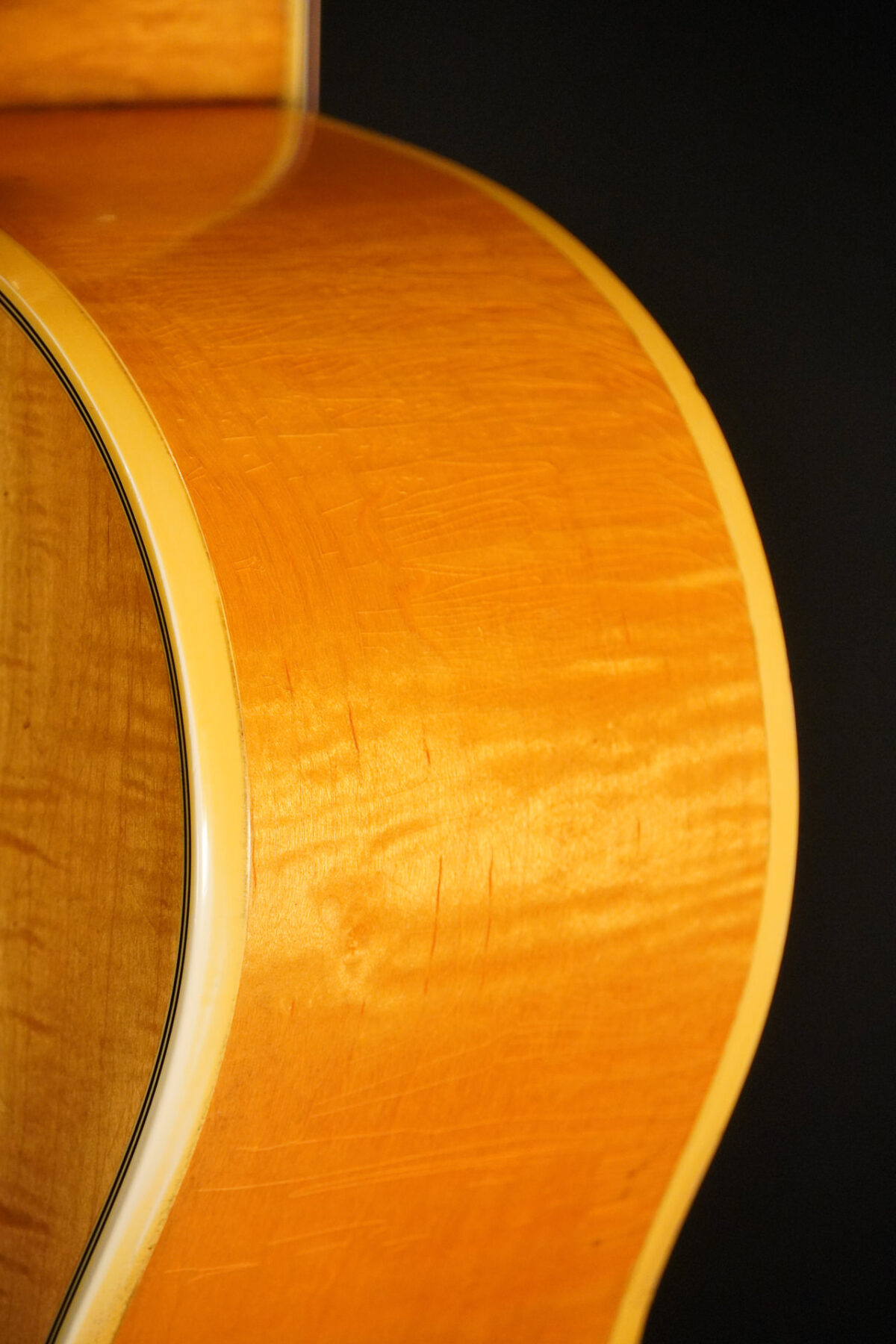 Klanglich zeigt sich diese Vintage Jumbo wunderbar druckvoll, durchsetzungsstark und warm. Tolle Gitarre, unbedingt bei uns testen!