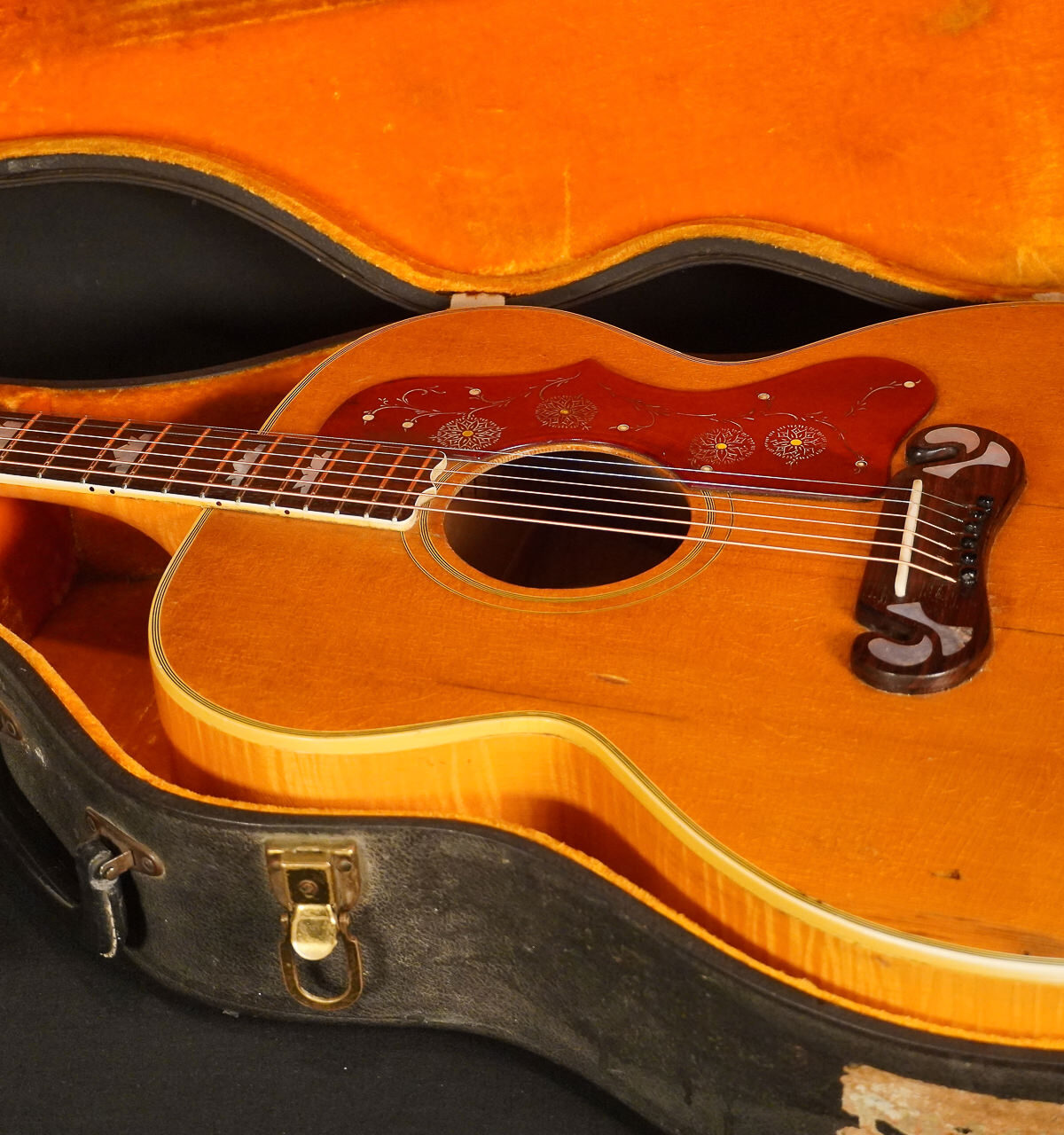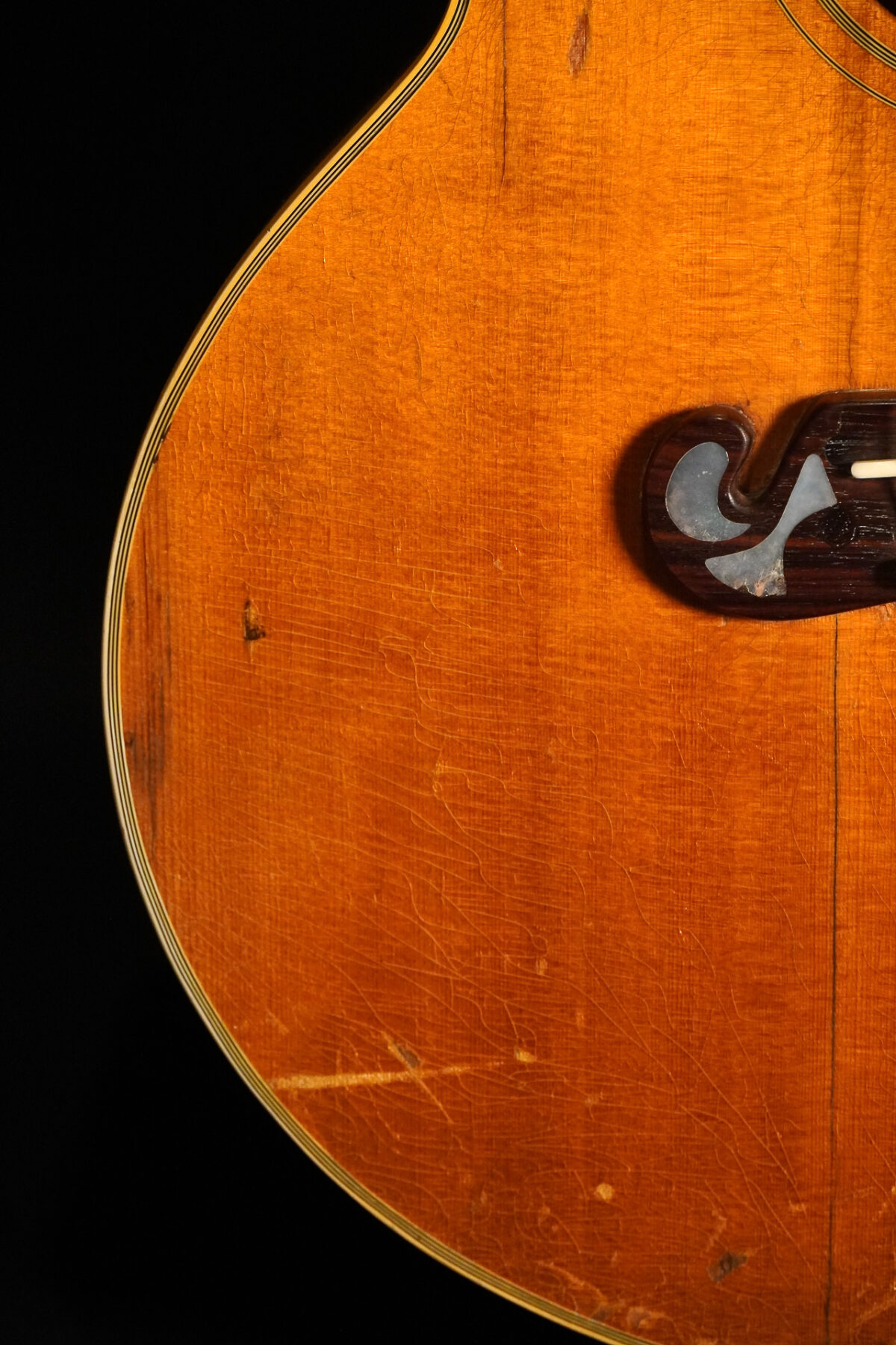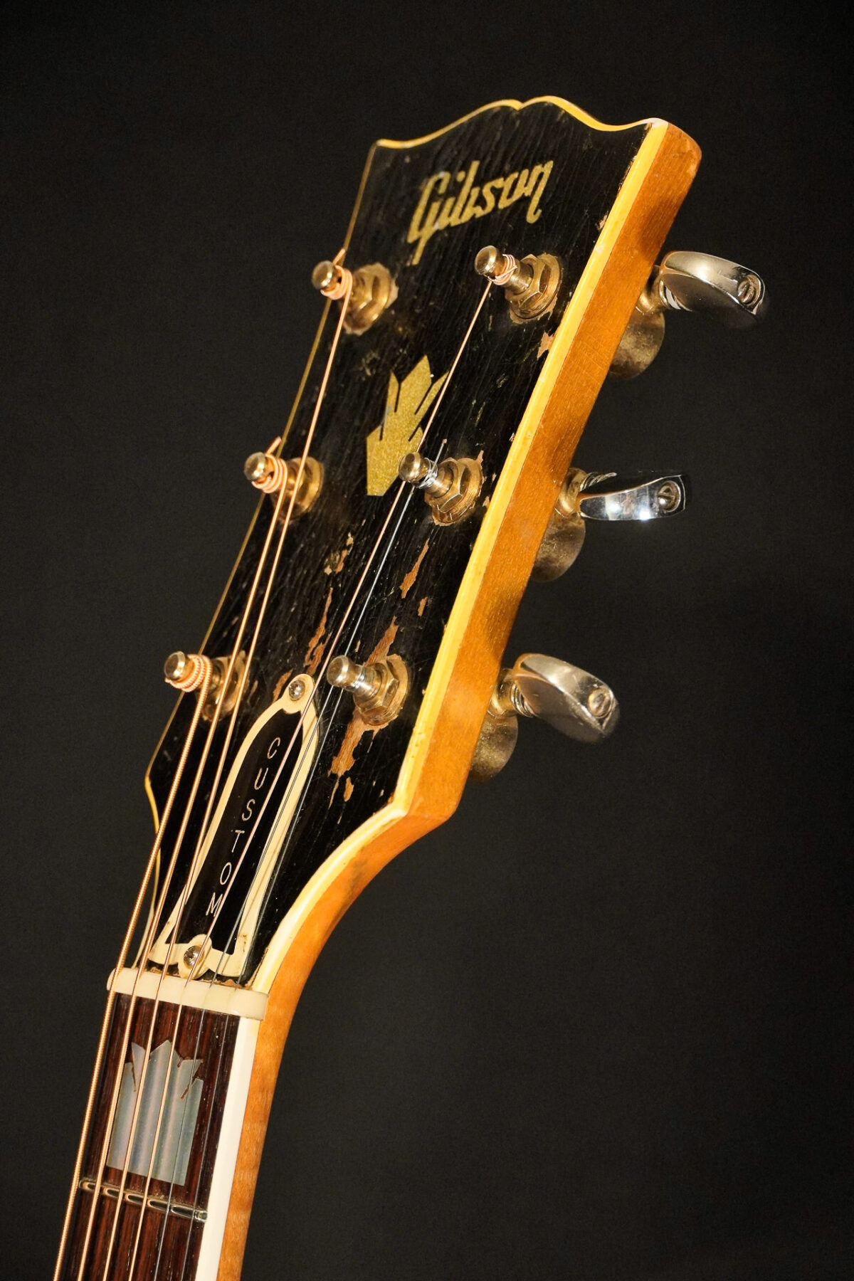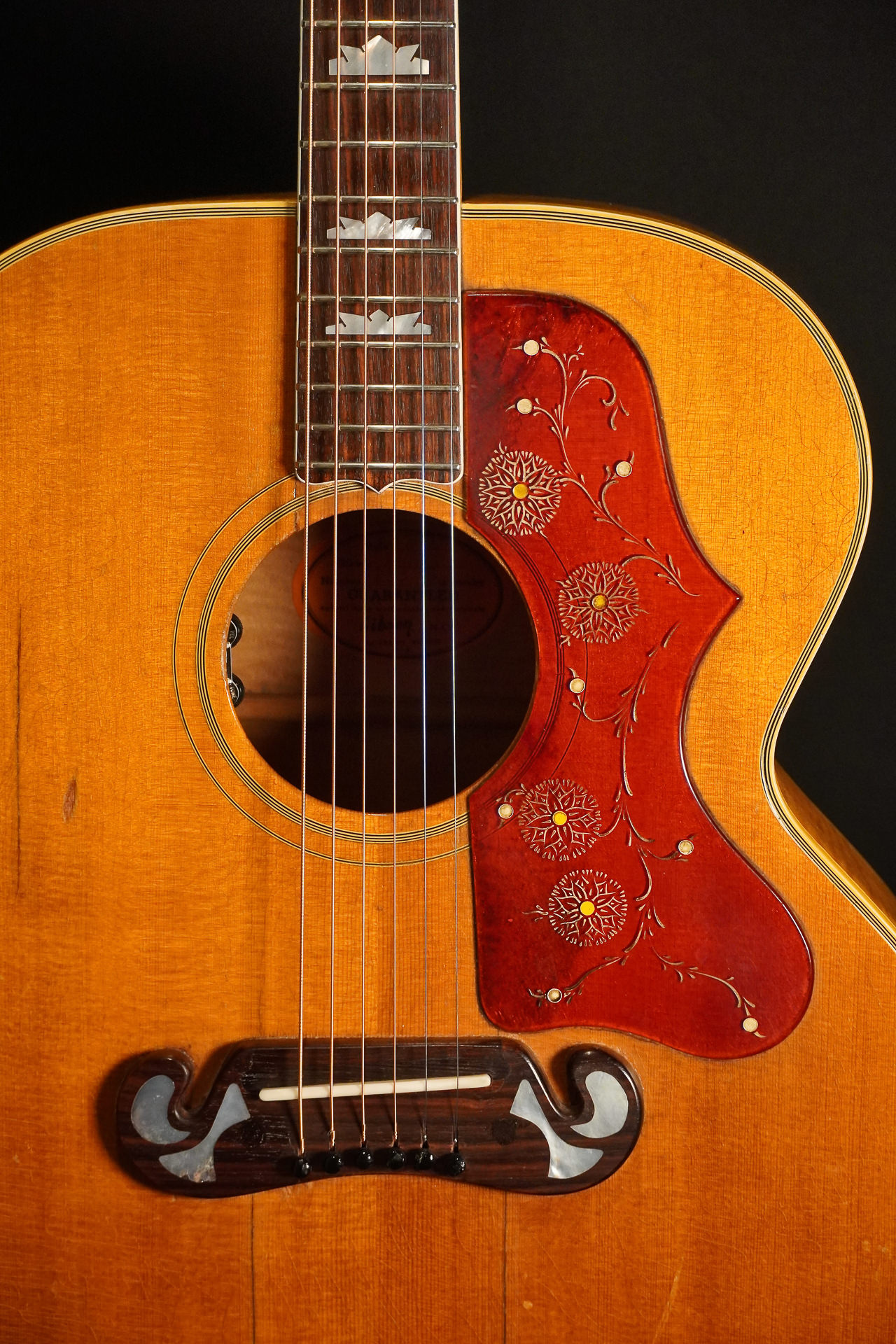 Diese bei uns verfügbare SJ200, Baujahr 1965, Seriennummer 515375, inklusive Originalkoffer, ist ein tolles Exemplar mit unverwechselbarem Gibson Vintage Tone und großartiger Patina. Das Instrument wurde viel gespielt und hat viel erlebt, was man dem Instrument auch ansieht. Kratzer, Spielspuren und Originallack mit den typischen Nitro-Crackles inklusive.