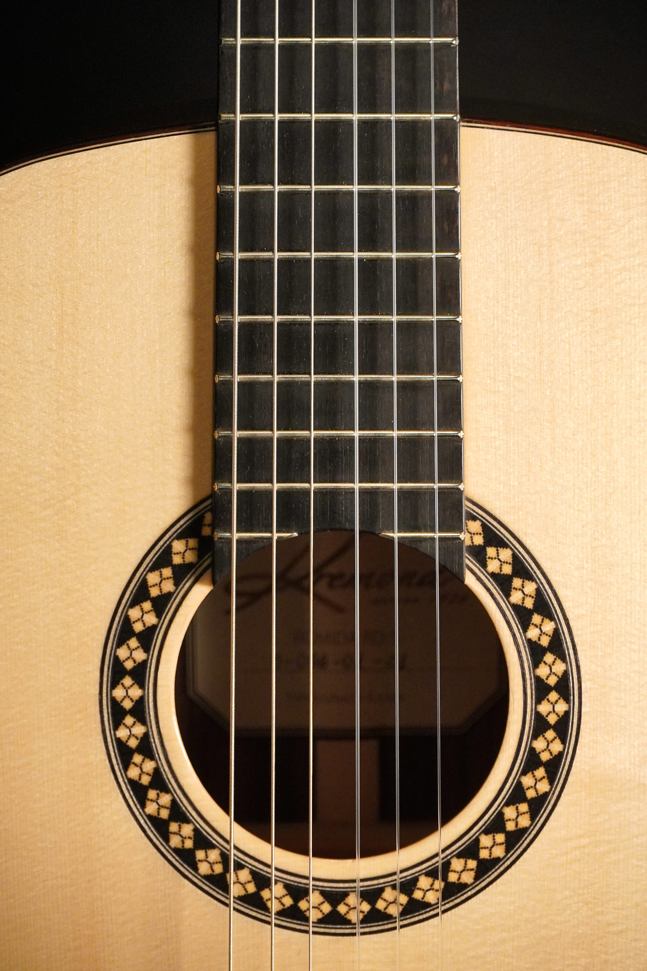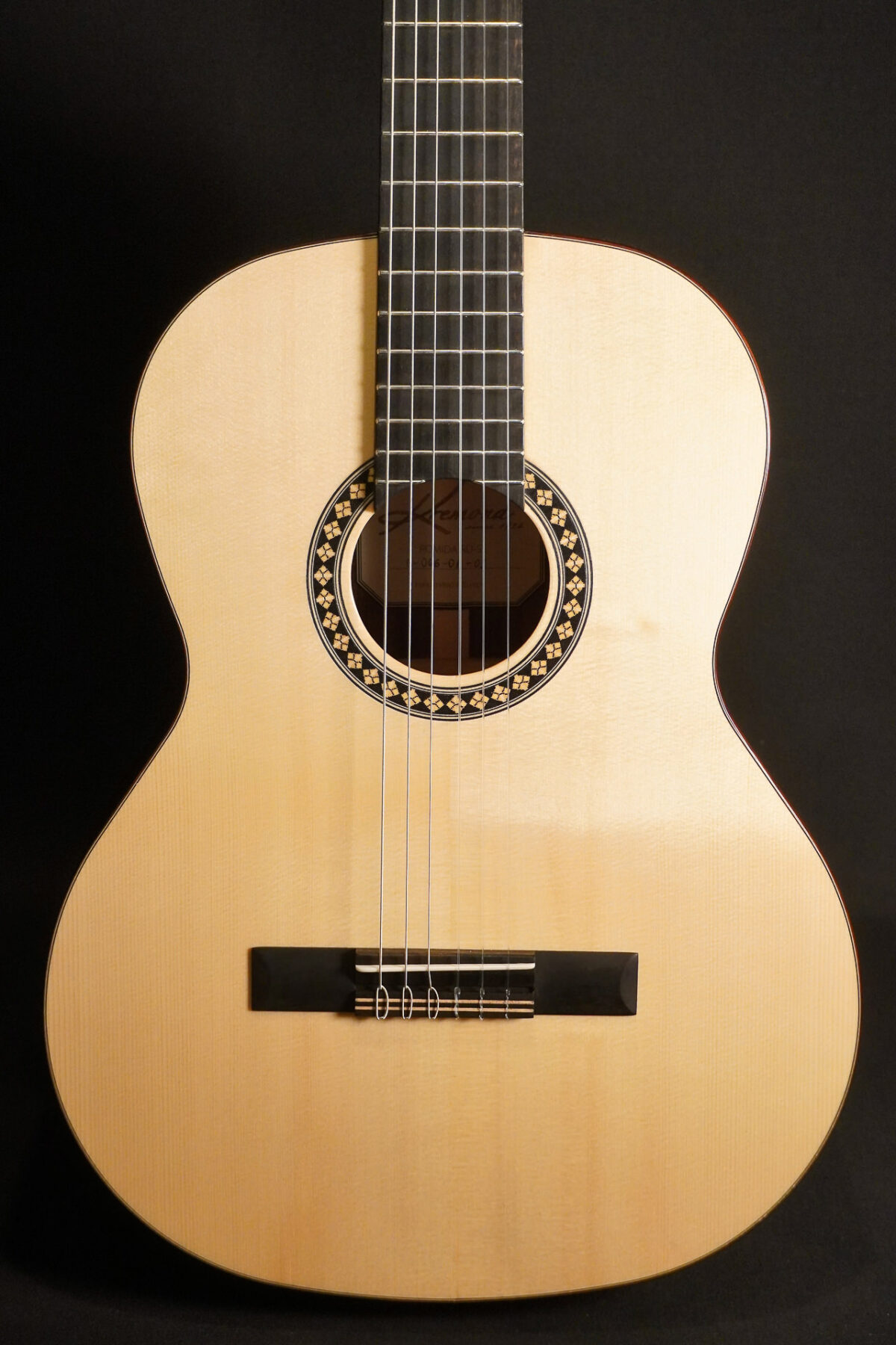 Vollmassiv gebaute und sehr hochwertig verarbeitete Konzertgitarre in der 4/4 Größe von Kremona aus Bulgarien. Massive Decke aus Fichte, Boden & Zargen aus massivem indischen Palisander.