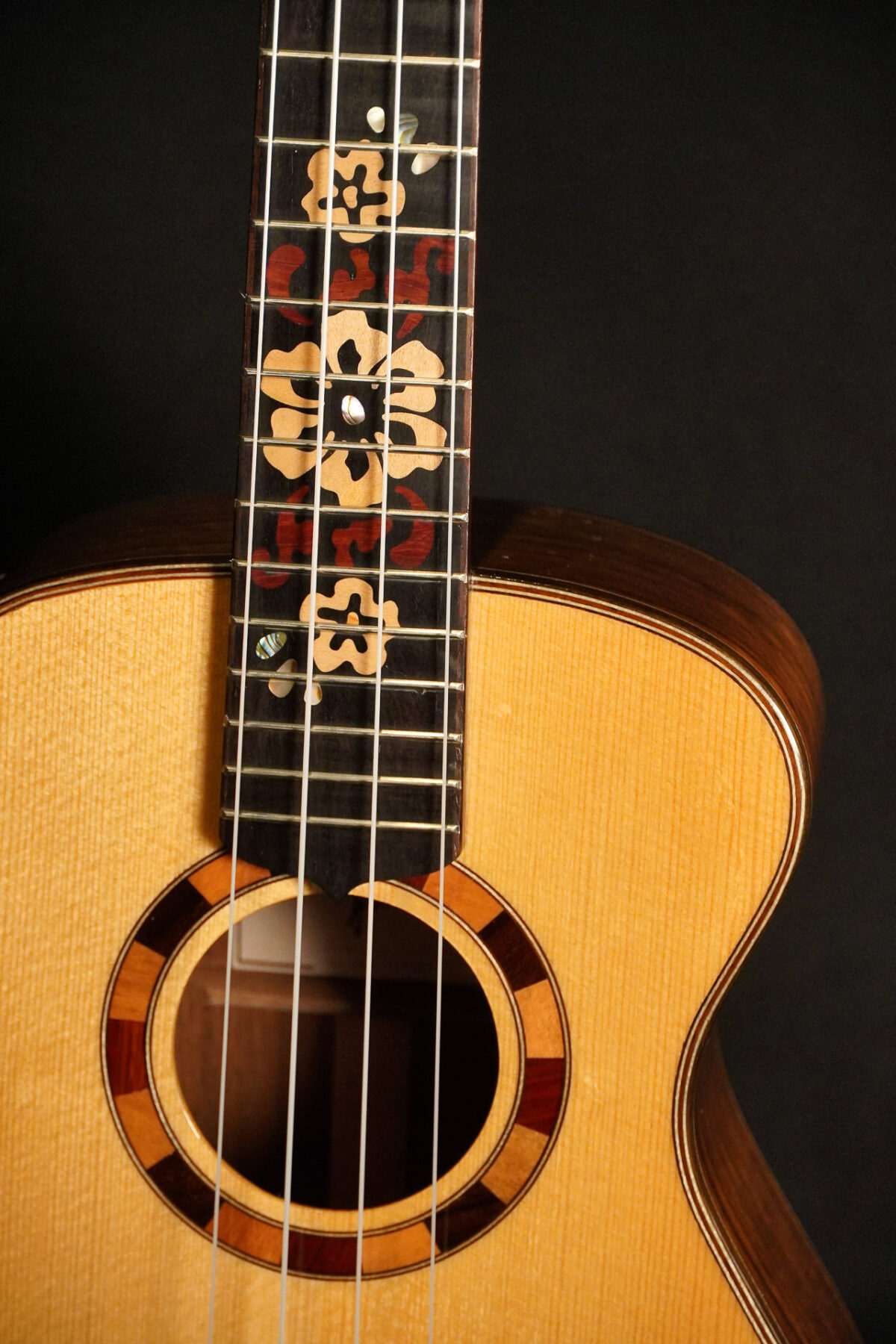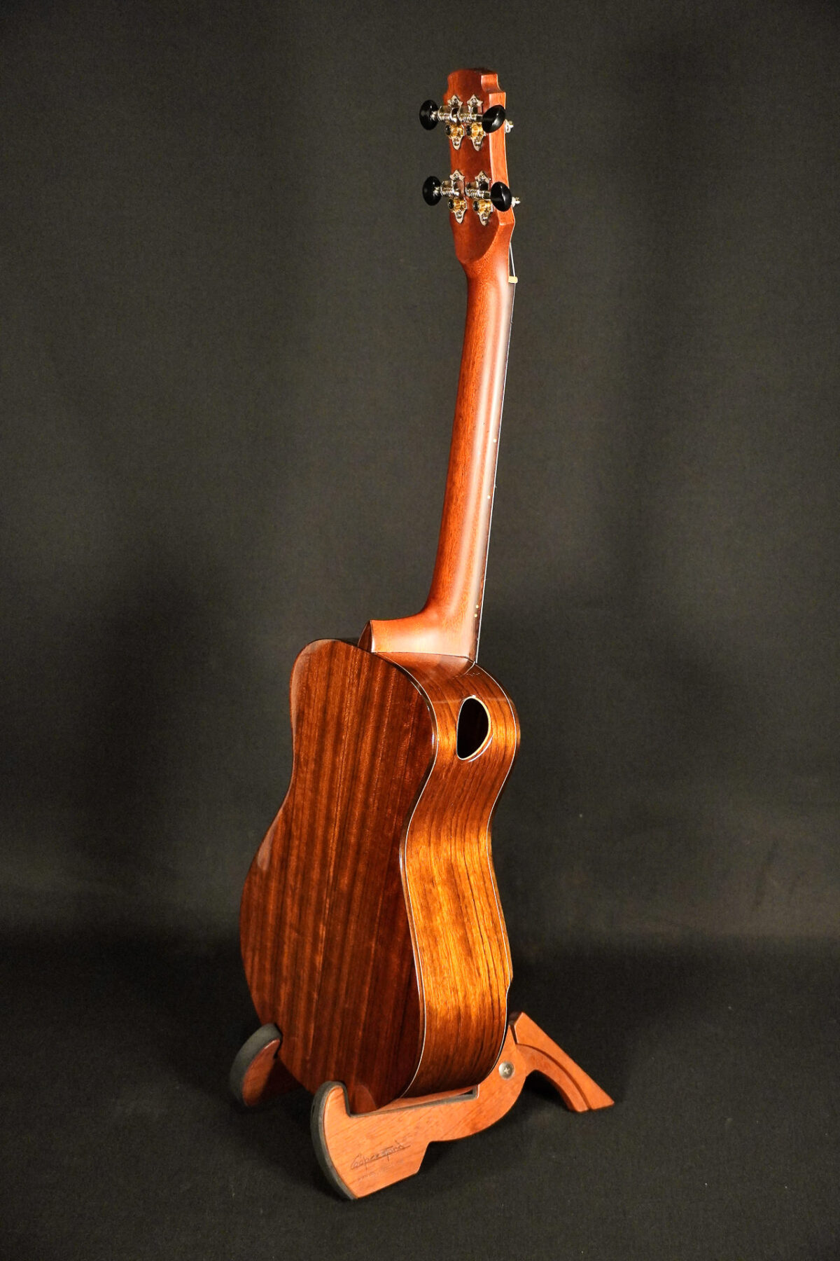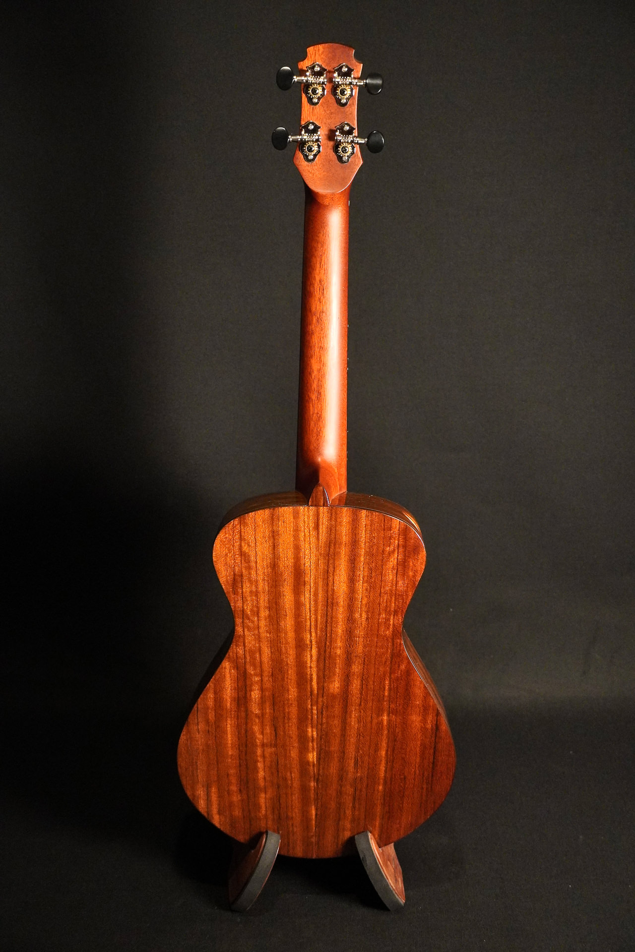 Massive Tenorukulele aus dem Hause Maestro. Massive Fichtendecke, Boden & Zargen aus massivem und wunderschön gemastertem afrikanischen Ovangkol.