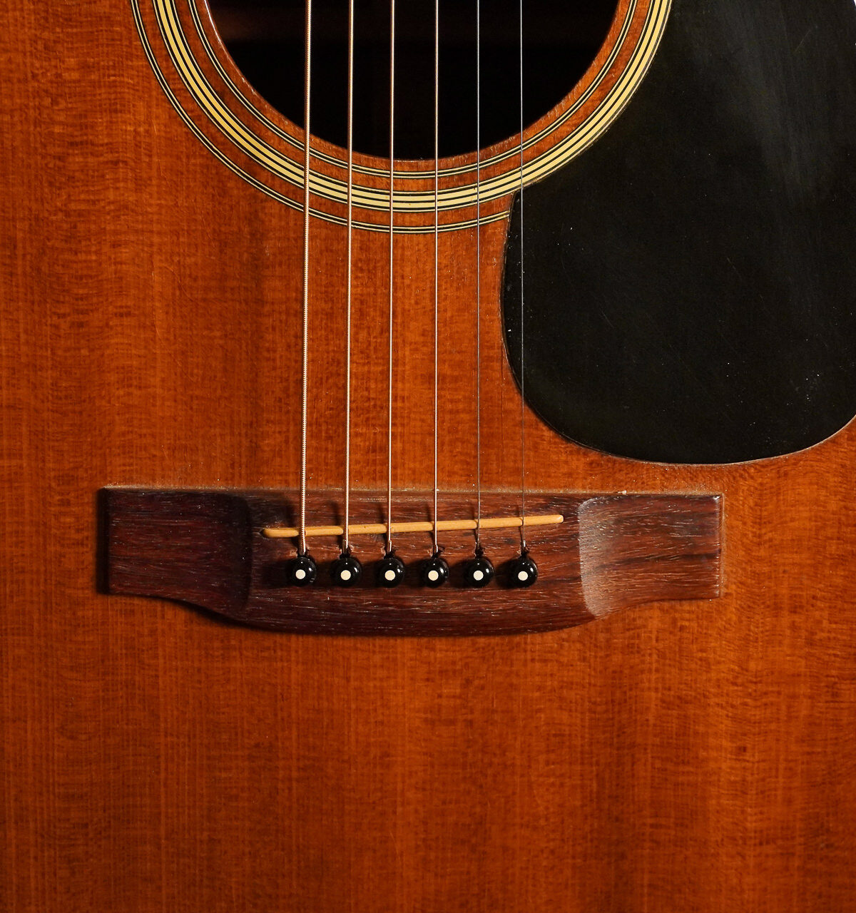 Mechanik der hohen E-Saite und einem kleinen Bodenriss, was wir beides in unserer Werkstatt professionell repariert haben, befindet sich diese seltene vintage Martin Dreadnought in exzellentem Zustand mit nur oberflächlichen Gebrauchsspuren, spielt sich toll, ist absolut resonant und liefert erwartungsgemäß einen kräftigen wie warmen Martin-Sound.