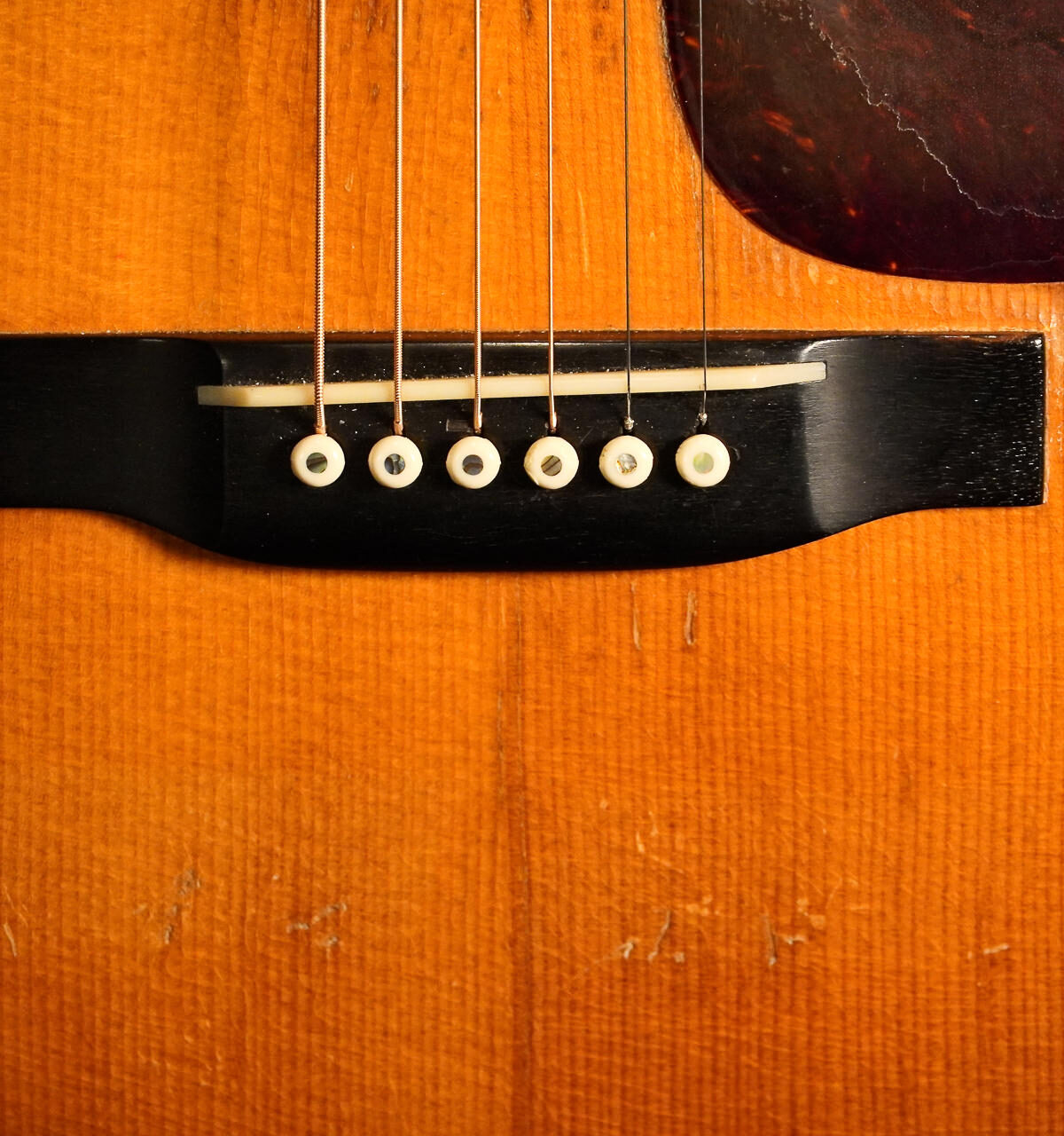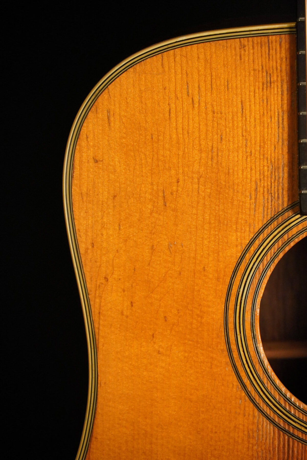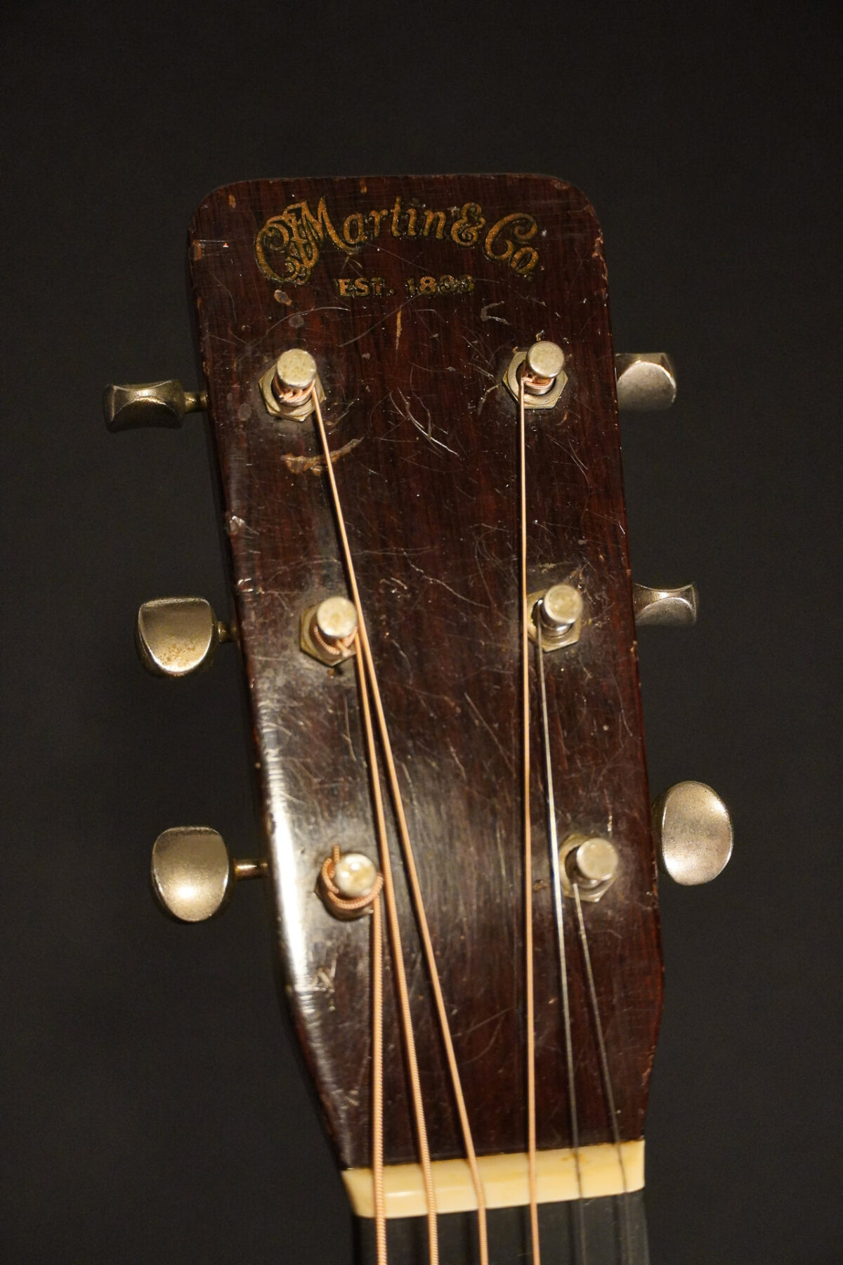 Der Zustand der Gitarre ist trotz ihres hohen Alters ebenfalls beeindruckend: Originale Hardware, originale Lackierung, guter Halswinkel, tolle Saitenlage und sehr angenehme Bespielbarkeit bei einer momentanen Besaitung mit Saitenstärke 013. Das Instrument hat ausserdem wirklich tollte Patina, die einen sofort in ihren Bann zieht! Man fragt sich was diese historische Martin wohl schon so alles gesehen und erlebt hat. Spielspuren und Kratzter sind also natürlich vorhanden, dies ist bei einer Gitarre diesen alters, die viel gespielt wurde und toll eingeschwungen ist, nicht anders zu erwarten.
