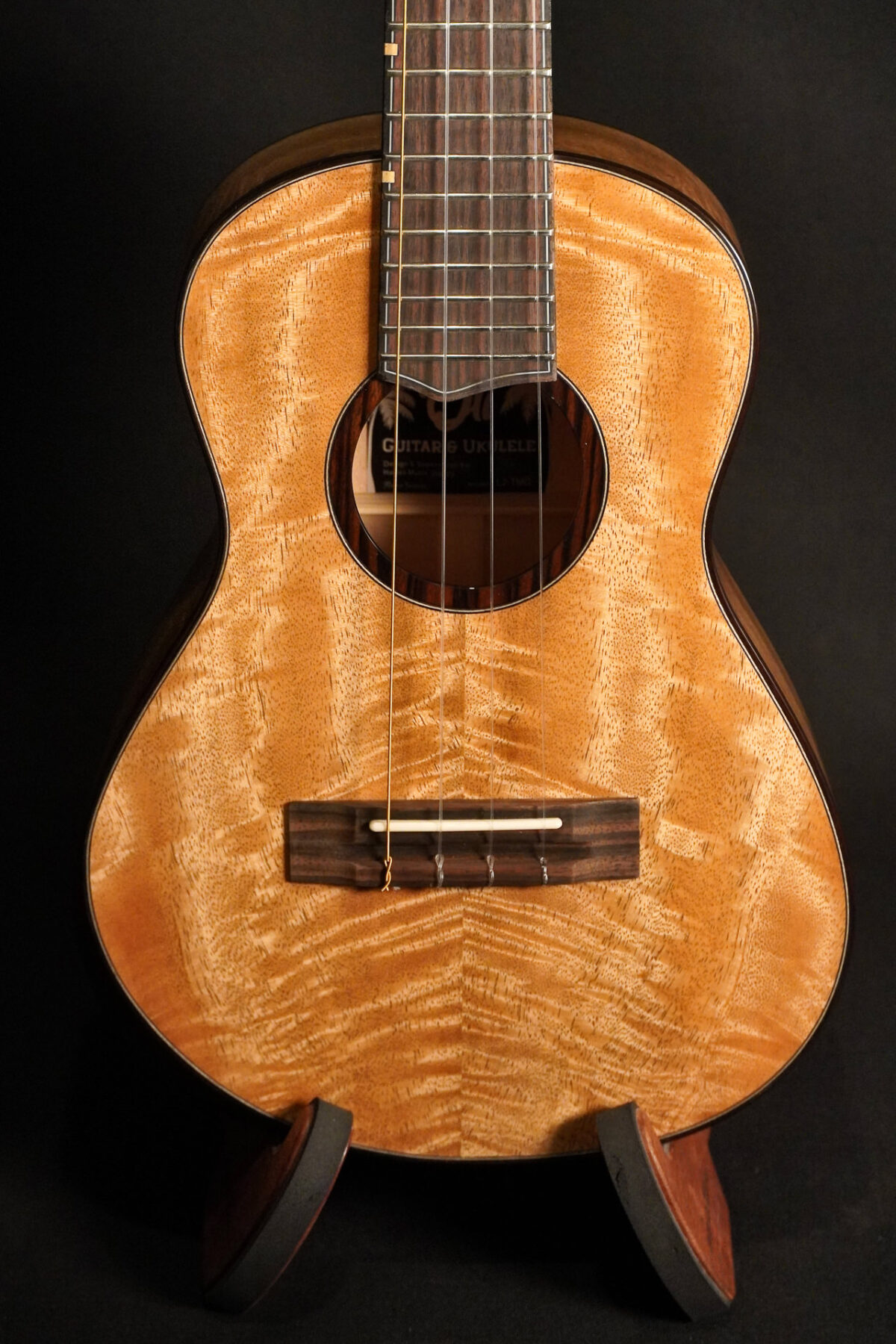 Wundervoll gearbeitete Tenor Ukulele von Oli aus toll gemasertem massivem Mangoholz. Das verbaute Soundport in der Zarge wirkt für den Spieler wie ein Monitor und erhöht das Klangerlebniss noch zusätzlich. Optisch ist das Instrument desweiteren mit schönen Bindings, aufwendigen Inlays in der Kopfplatte und einem Bevel aus Ebenholz aufgewertet. Ein tolles Instrument, das keine Wünsche offen lässt.