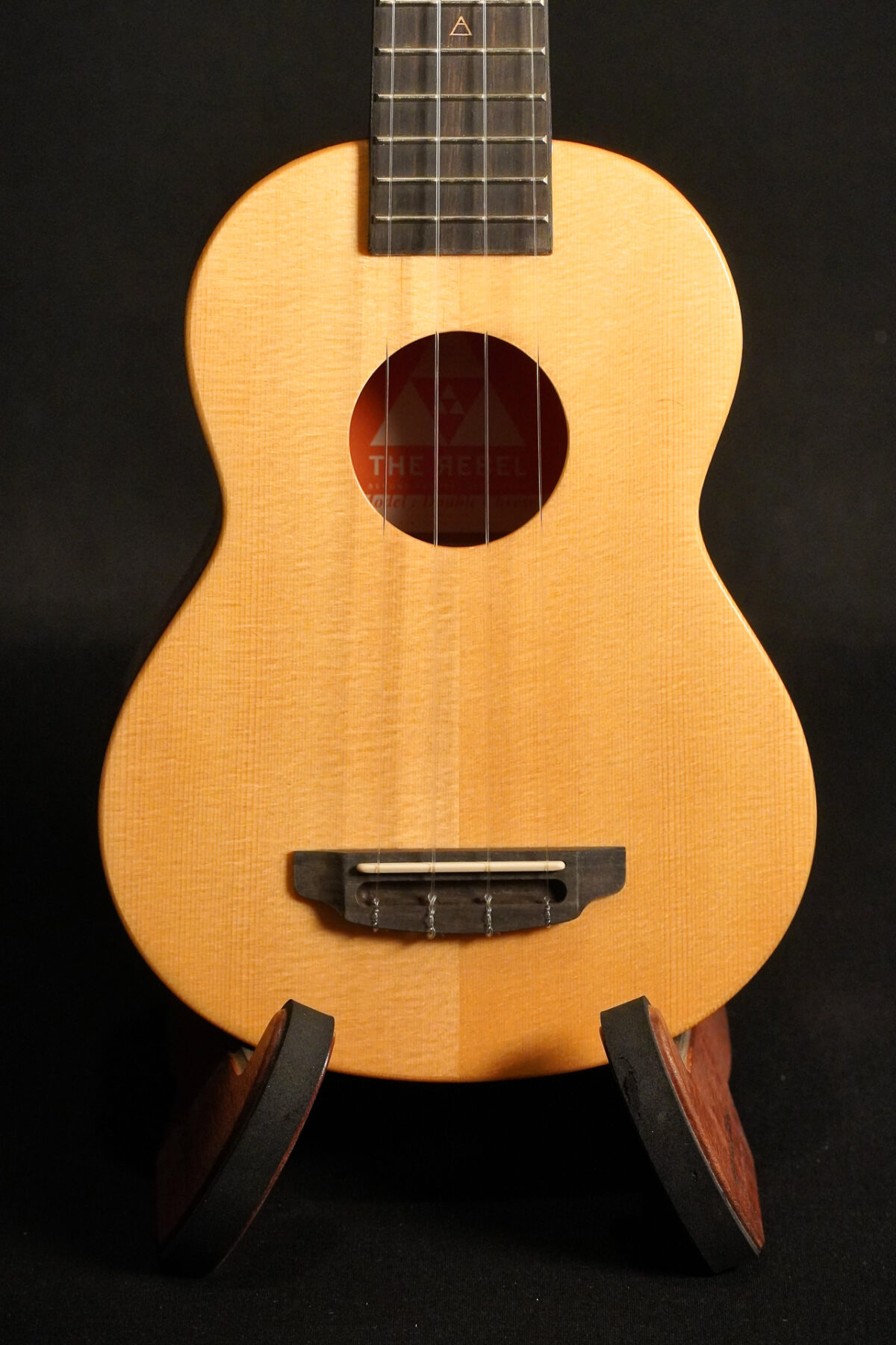 Die Rebel „Double Cheese“ Ukulele kommt mit massiver Fichtendecke und Boden / Zargen aus massivem Mahagoni. Bei diesem Modell handelt es sich um eine wunderschöne Sopran-Größe in Hochglanz lackiert.