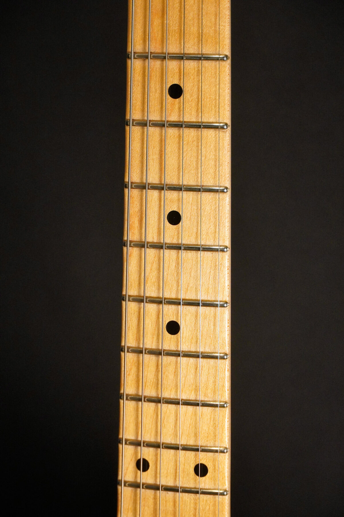 Frisch aus unserem Münchner Custom-Shop: Stevens Custom Tele in Blonde, Custom aged. Gotoh Hardware, Häussel Broadcaster Pickups, Korpus aus chambered Esche, Ahornhals mit 6110 Jumbo Frets. Eine echte Twang-Maschine!
