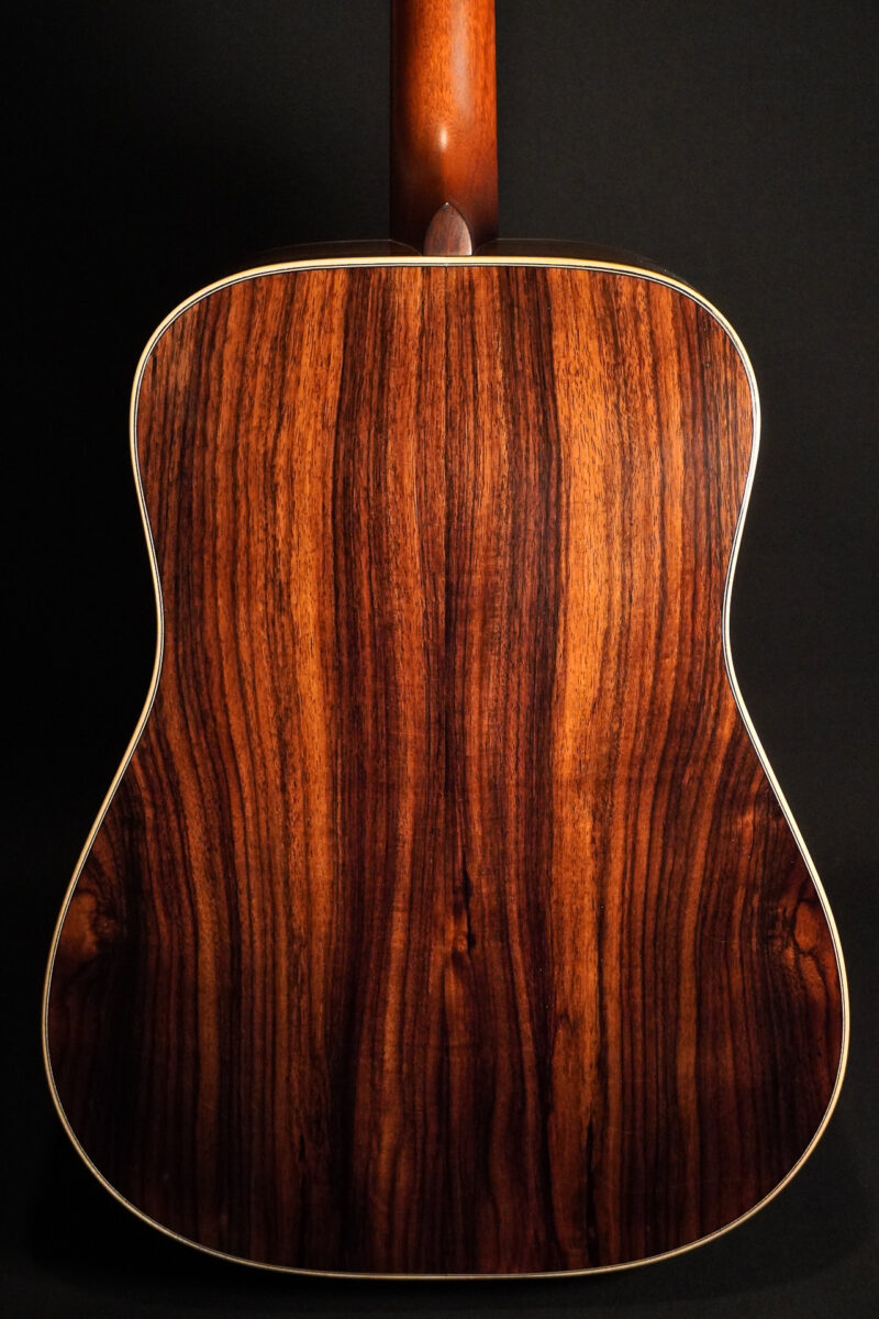 Eine von unseren Dreadnoughts, wunderbar leicht, laut und resonant.. Für die Decke haben wir eine Haselfichte höchster Qualität verwendet. Boden und Zargen sind aus indischem Palisander gefertigt. Nitrolack custom aged, Herringbone Binding, Vintage Mechaniken.