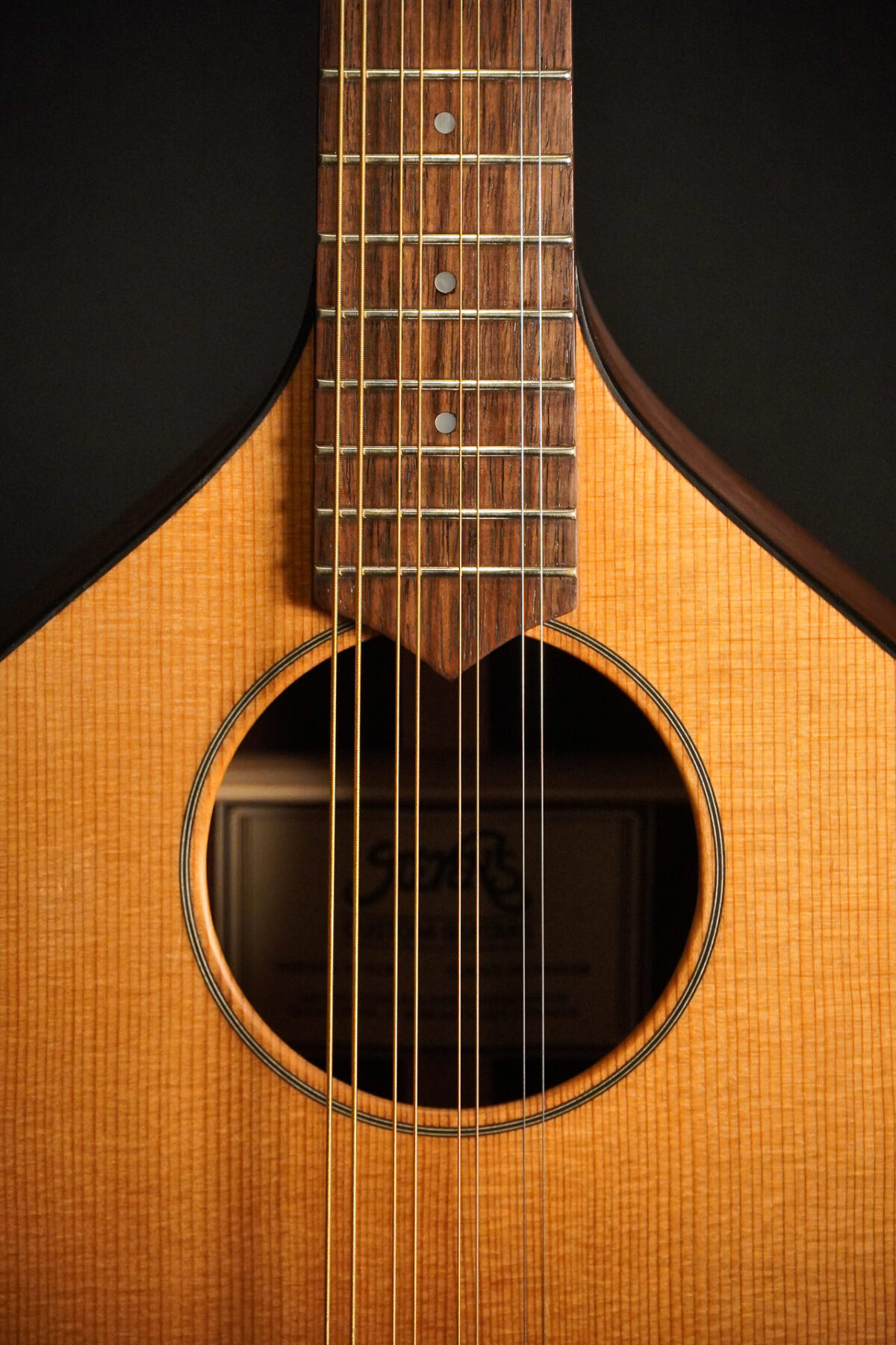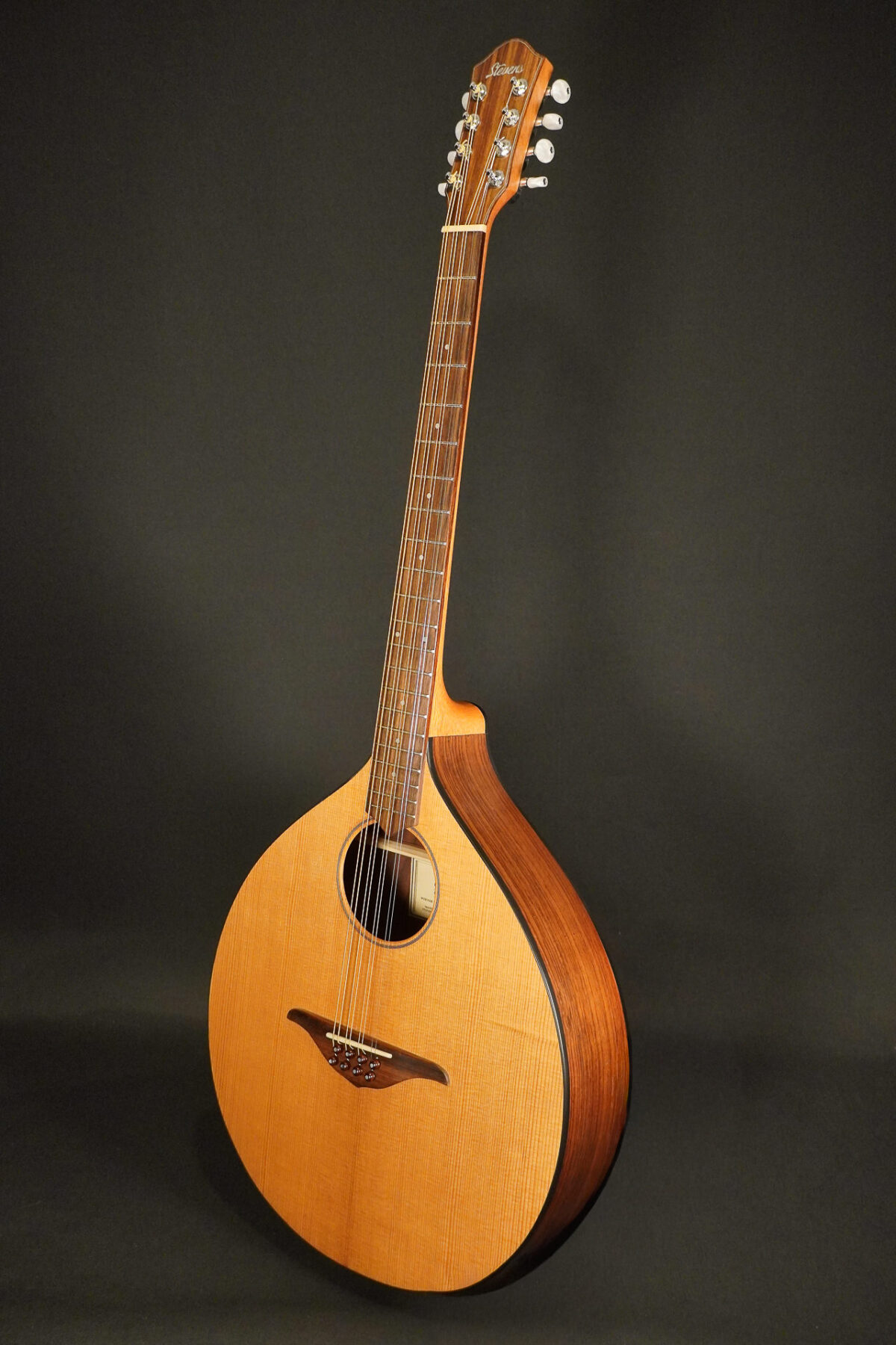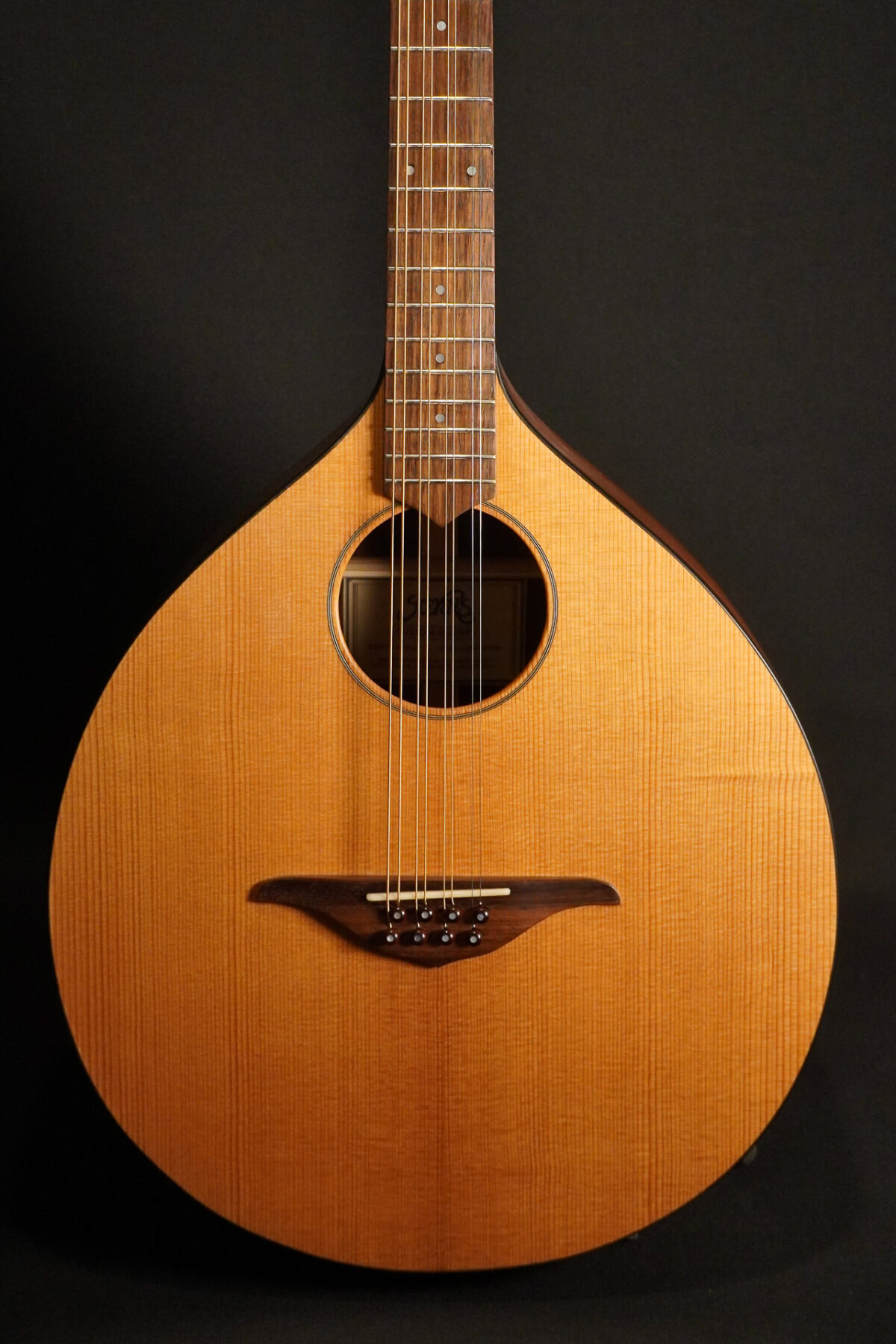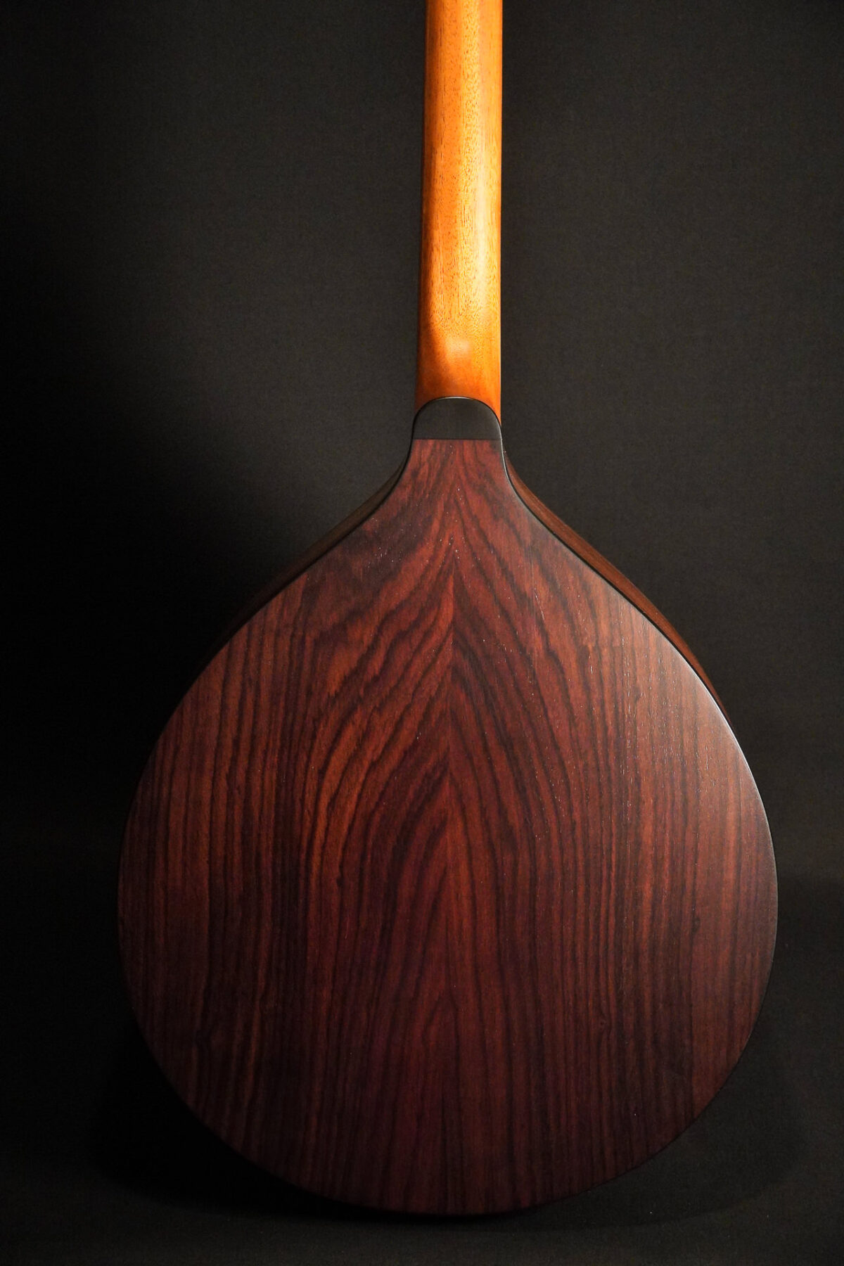 Bei dieser Irish Bouzouki haben wir Thermofichte mit feinem indischen Palisander kombiniert. Ein hochwertiger Piezo-Tonabnehmer ist ebenfalls von uns verbaut worden.