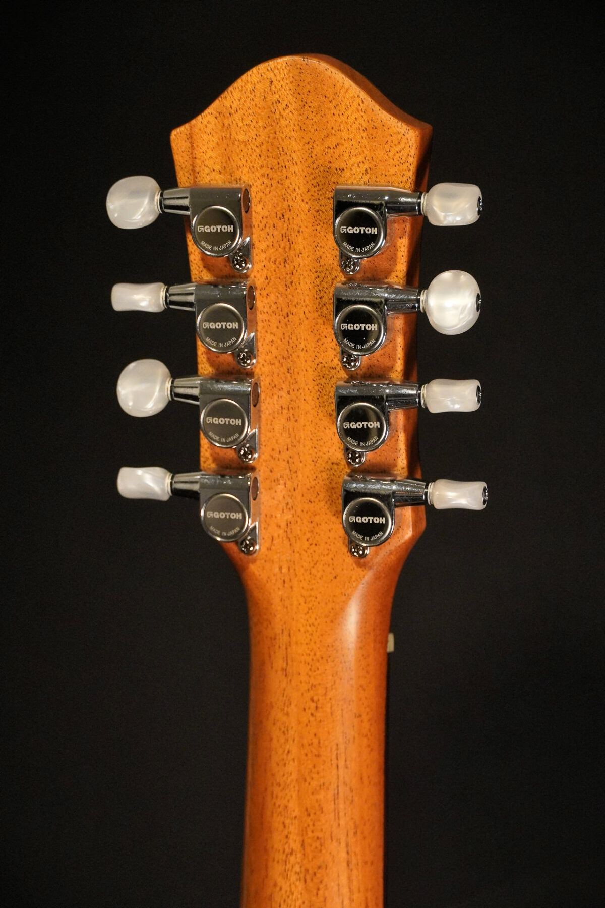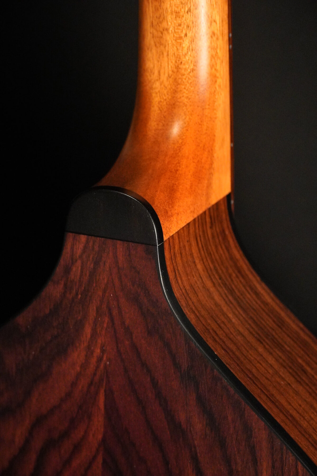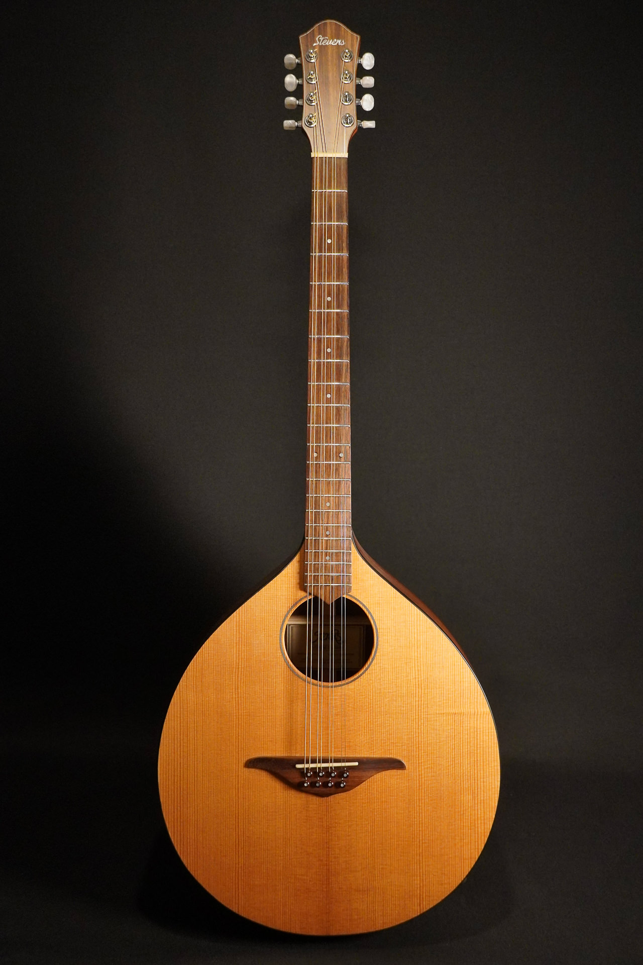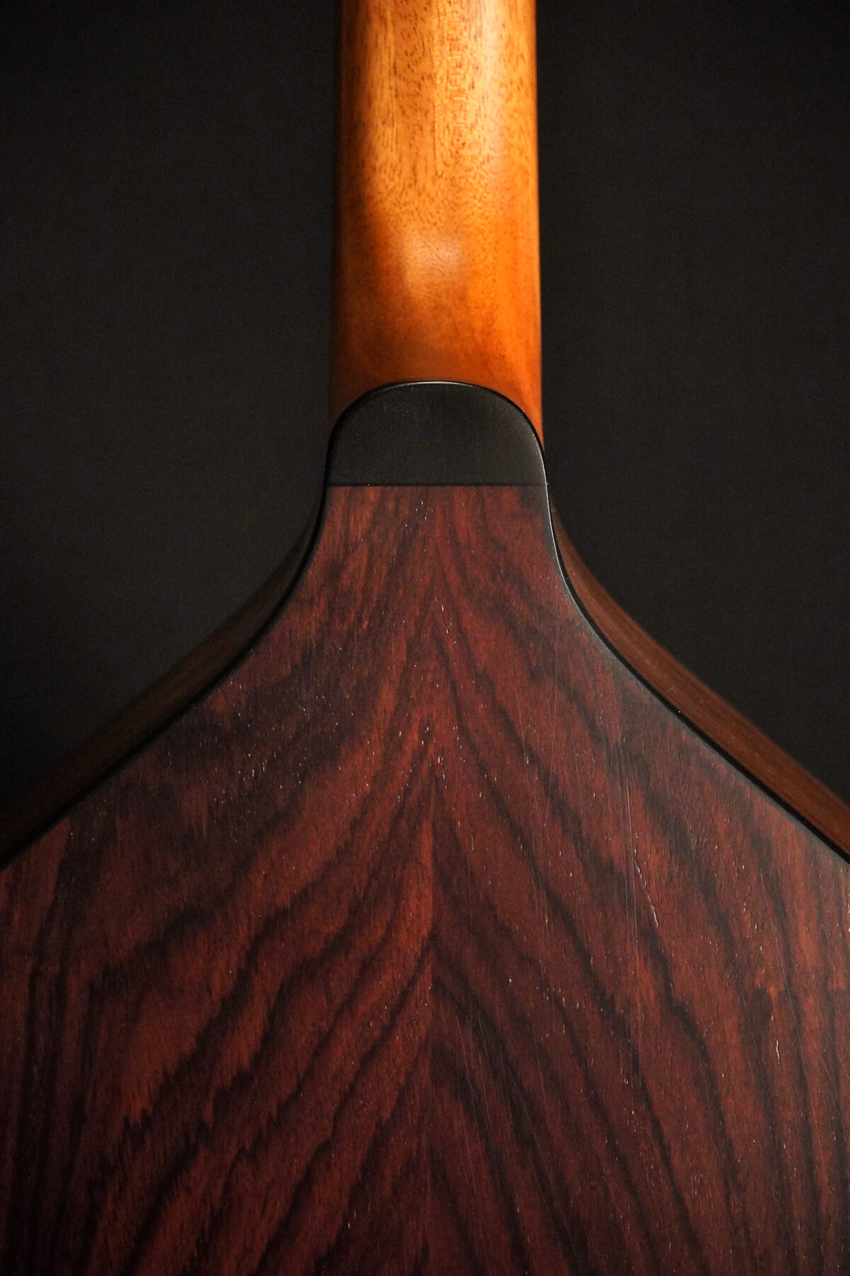 Bei dieser Irish Bouzouki haben wir Thermofichte mit feinem indischen Palisander kombiniert. Ein hochwertiger Piezo-Tonabnehmer ist ebenfalls von uns verbaut worden.
