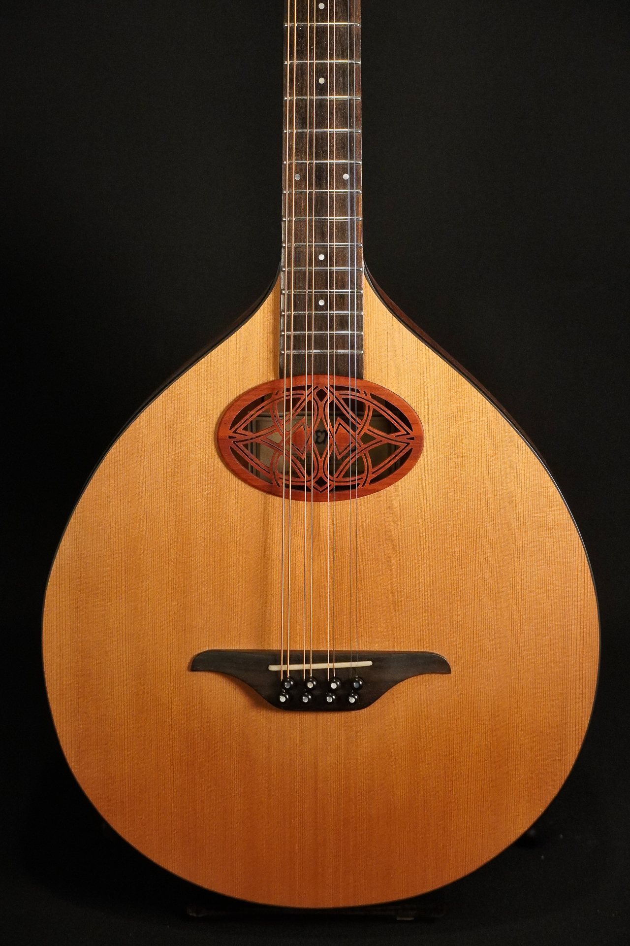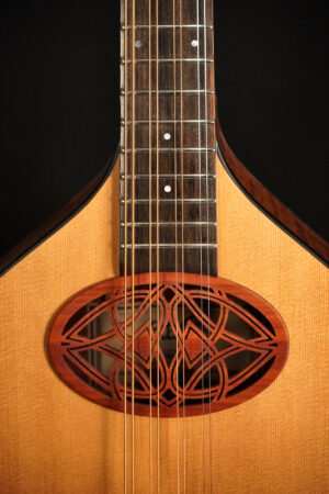 Die Mandola „Medieval“ mit Decke aus Thermofichte, 3-teiligem Boden und „medieval“ Fensterkopfplatte. Wie alle Stevens Instrumente handgefertigt in unserer Meisterwerkstatt in München.