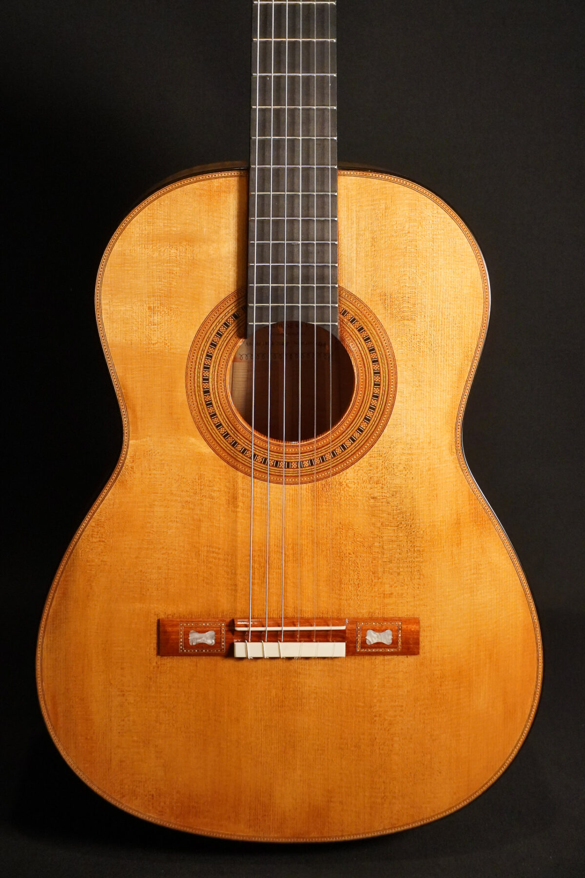 Die Torres 43 ist einem Original-Instrument nachempfunden, welches der legendäre Gitarrenbauer Antonio de Torres 1883 baute. Antonio de Torres gilt bis heute als einer der einflussreichsten Gitarrenbauer überhaupt. Um diese Gitarre zu bauen, wurde das Original-Instrument genau untersucht und anschließend anhand detailliertester Baupläne gebaut. Die Torres 43 mit deutscher Fichtendecke, Boden und Zargen aus Ahorn ist klanglich sehr klar und präsent und spielt sich sehr angenehm. Auch optisch überzeugt dieses Instrument mit toller Lackierung, hochwertigen Mechaniken und aufwendigen optischen Details an Rosette, Zarge und Steg. Hochwertiges Hardcase inklusive.